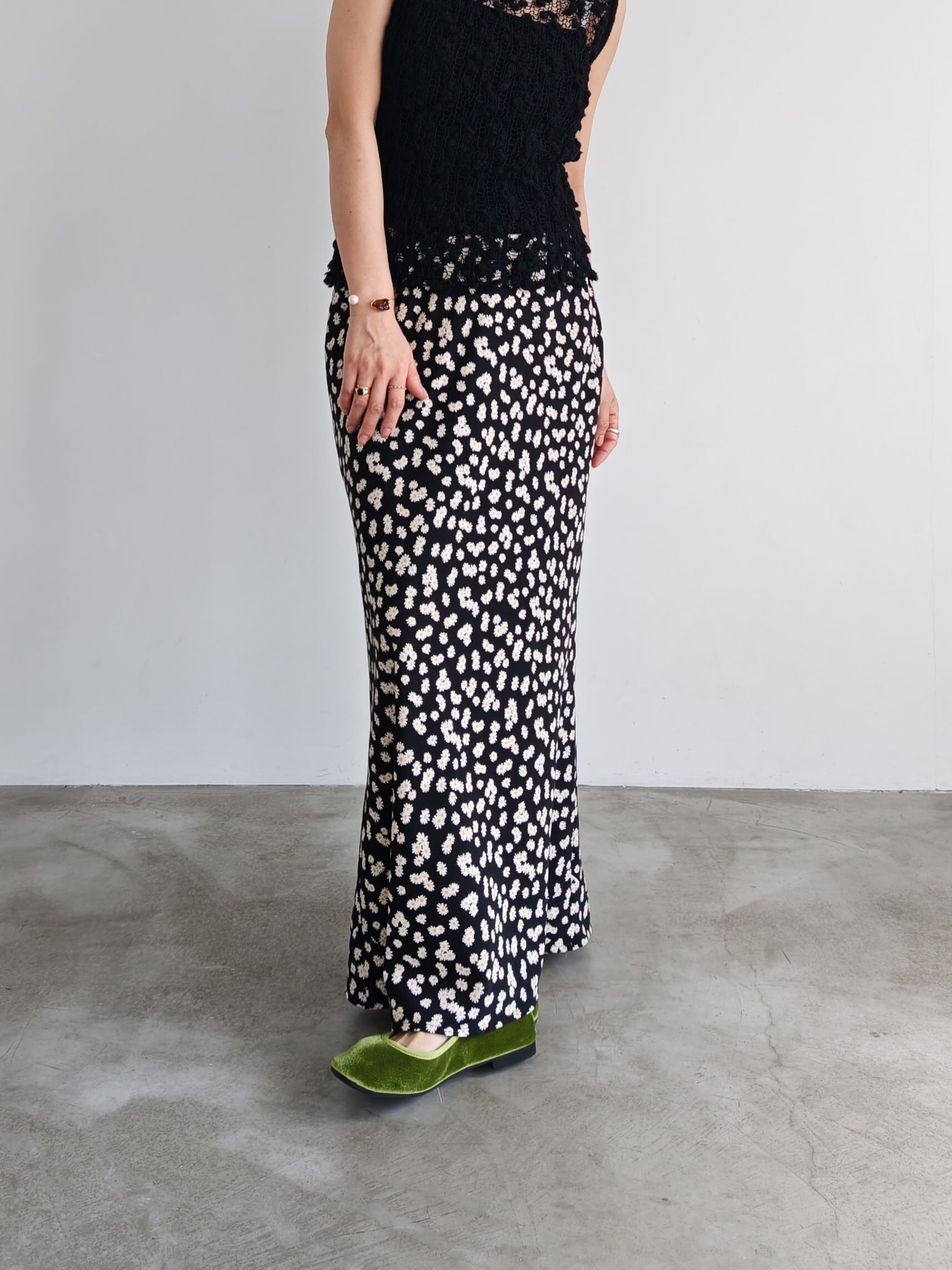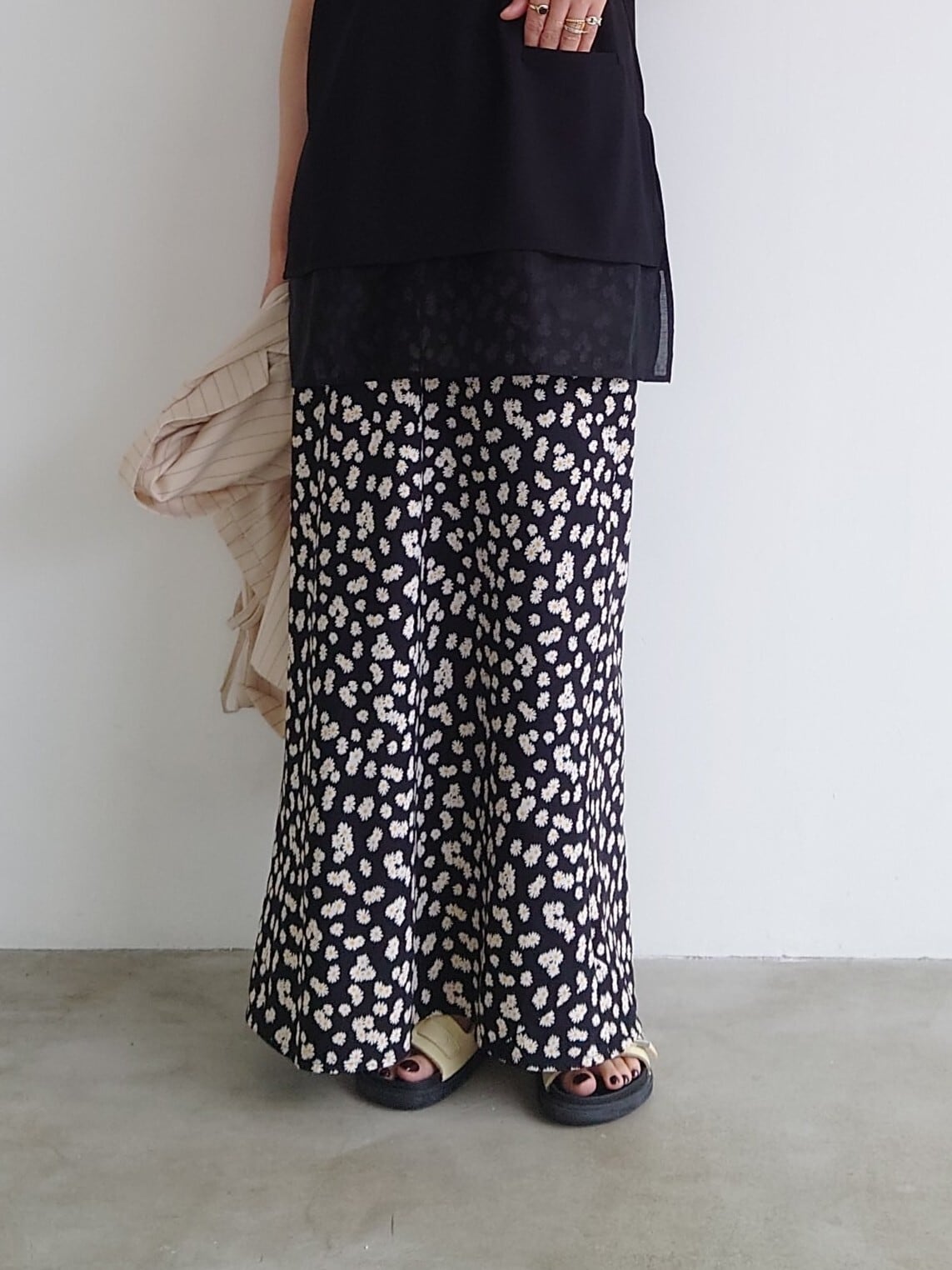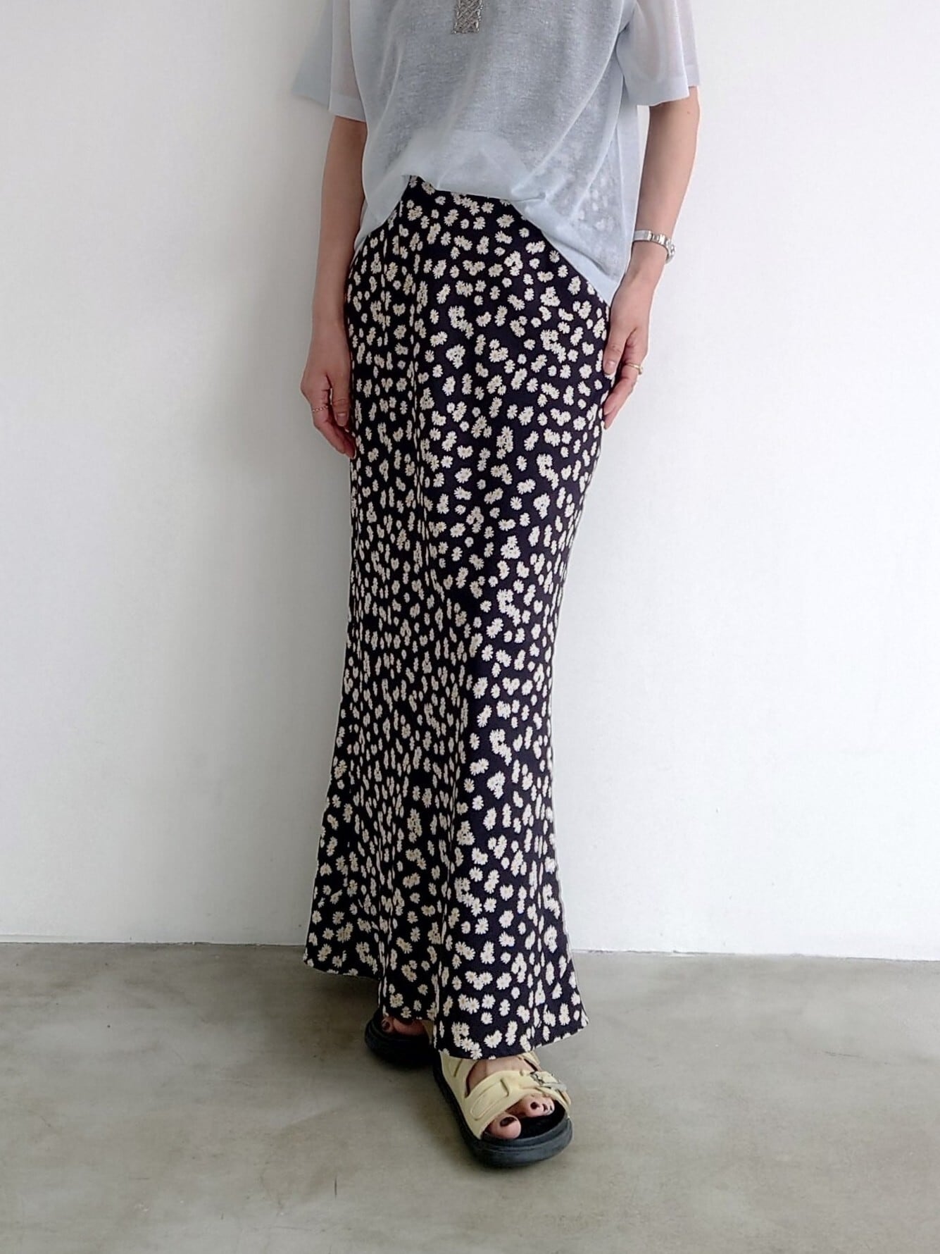 花柄の生地も斜めに使い柄がきれいに動きが出てみえるようにsimpleなシルエットですがこだわり詰まったスカートです。