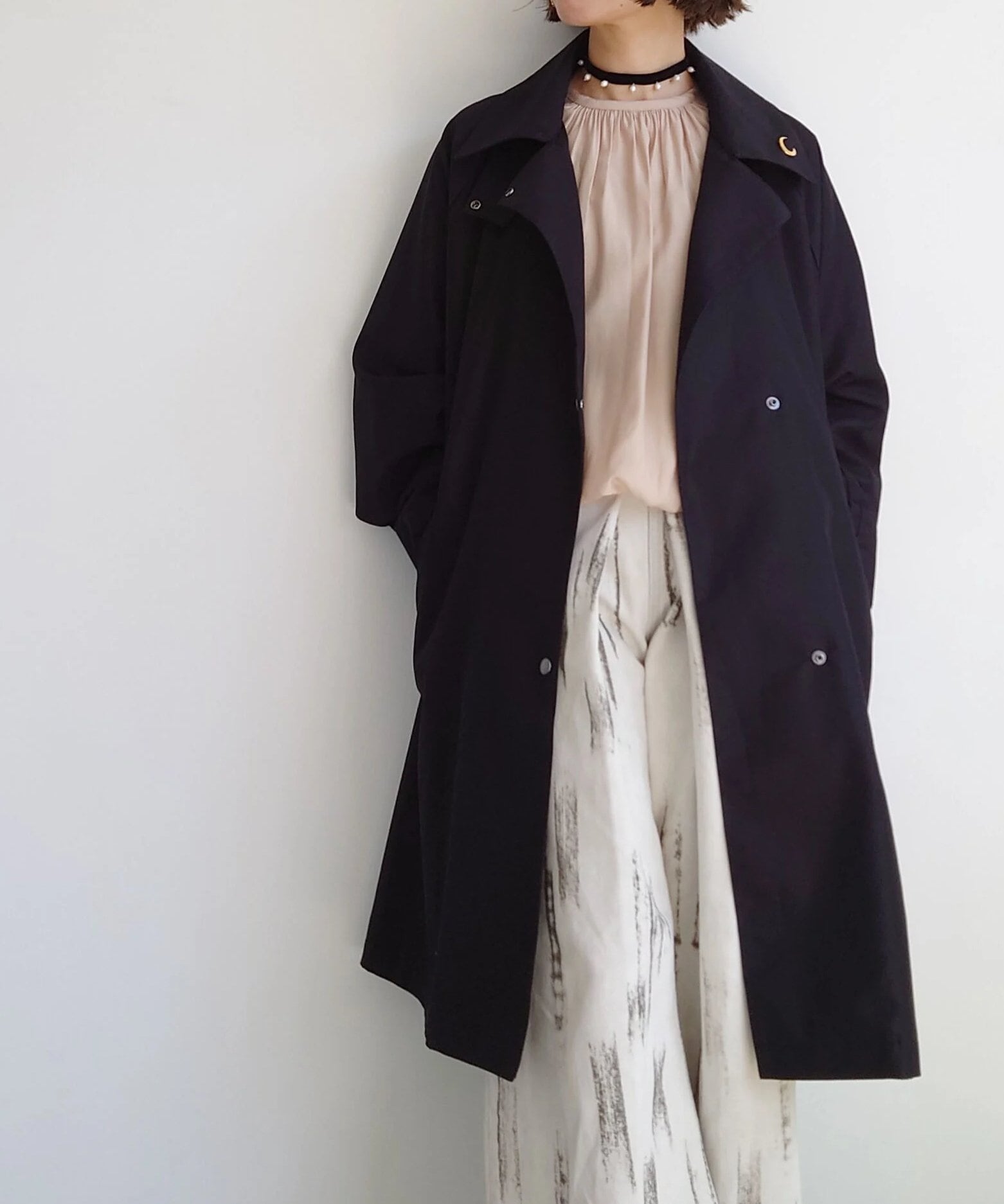 素材は永く愛用していただける日本製の生地で綿ポリエステルでシワになりにくく、撥水なので花粉も付きづらいので、春や秋にももちろん肌寒い朝晩や、梅雨時少し寒い時にも活躍するコートが完成しました。