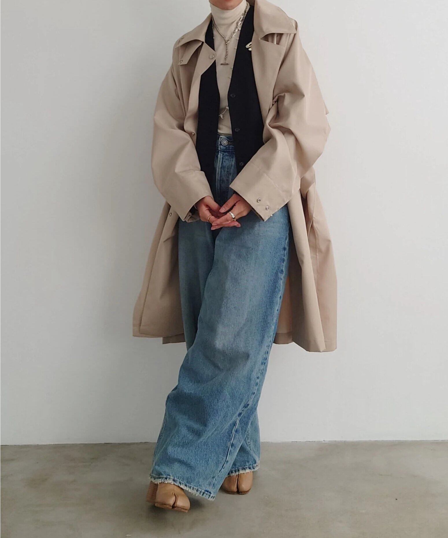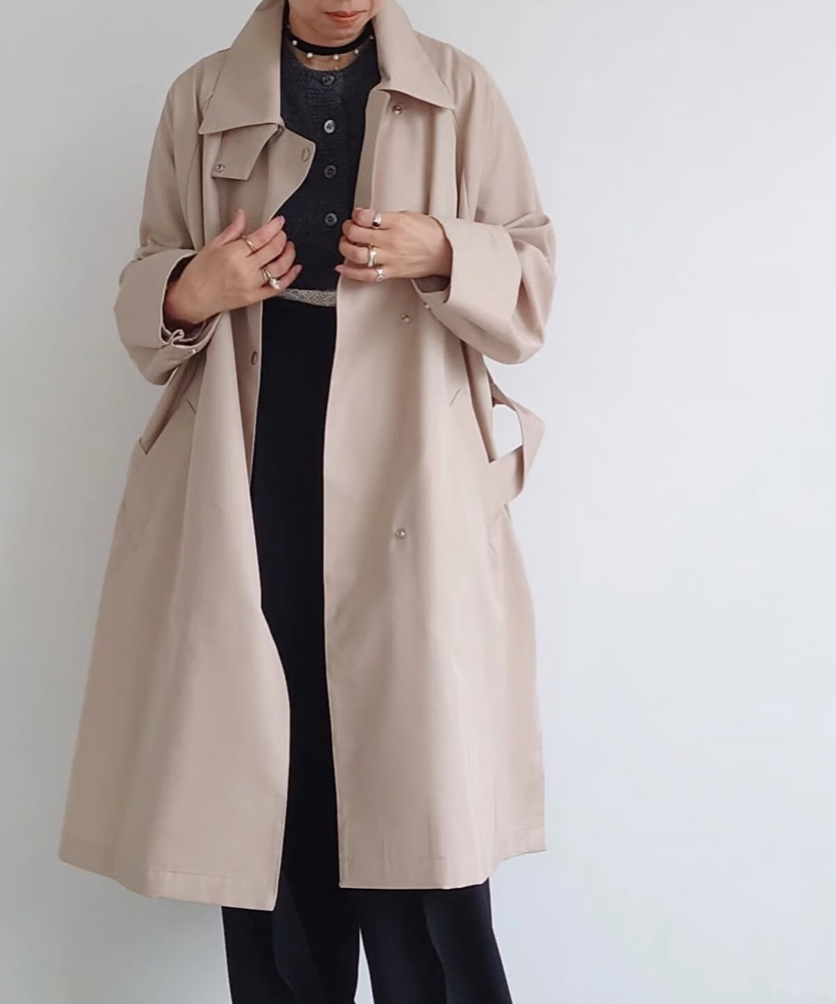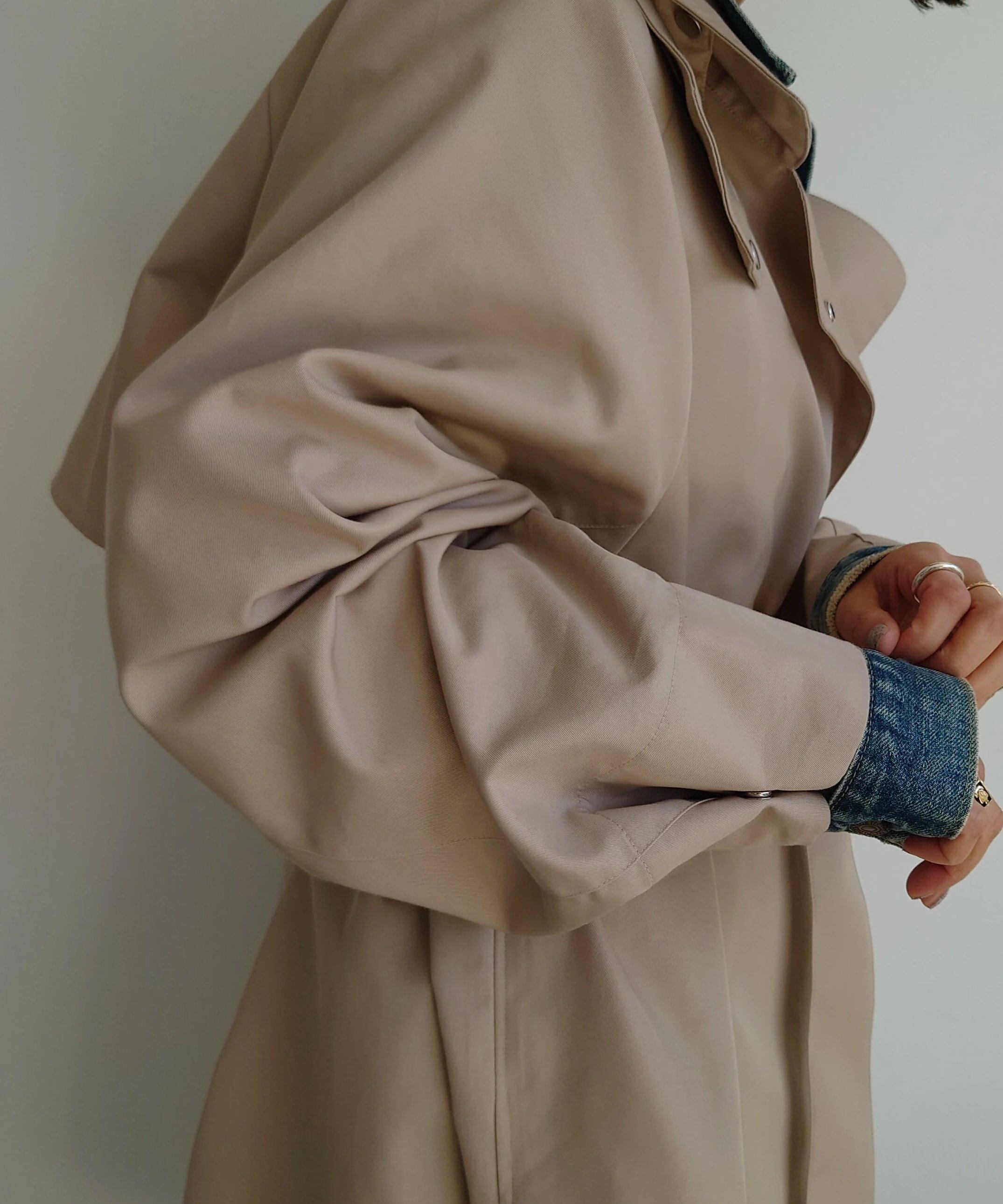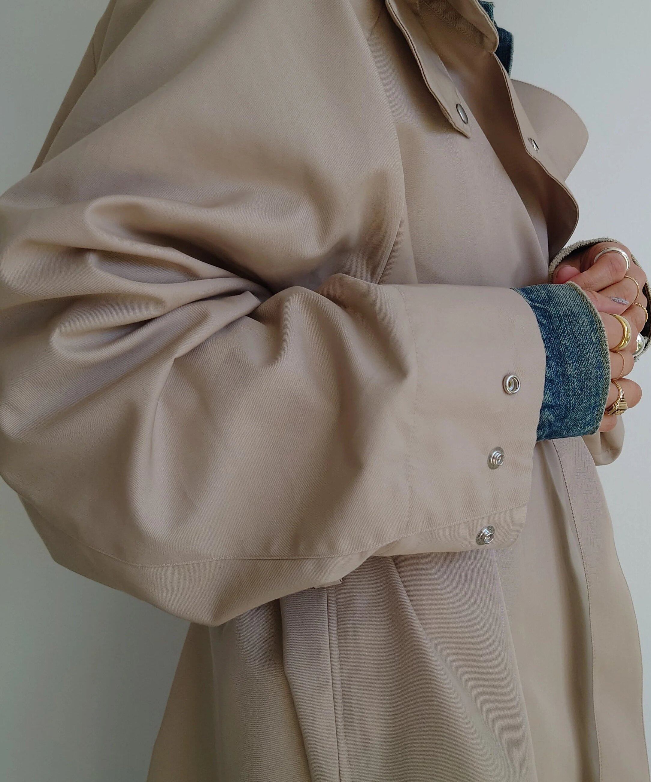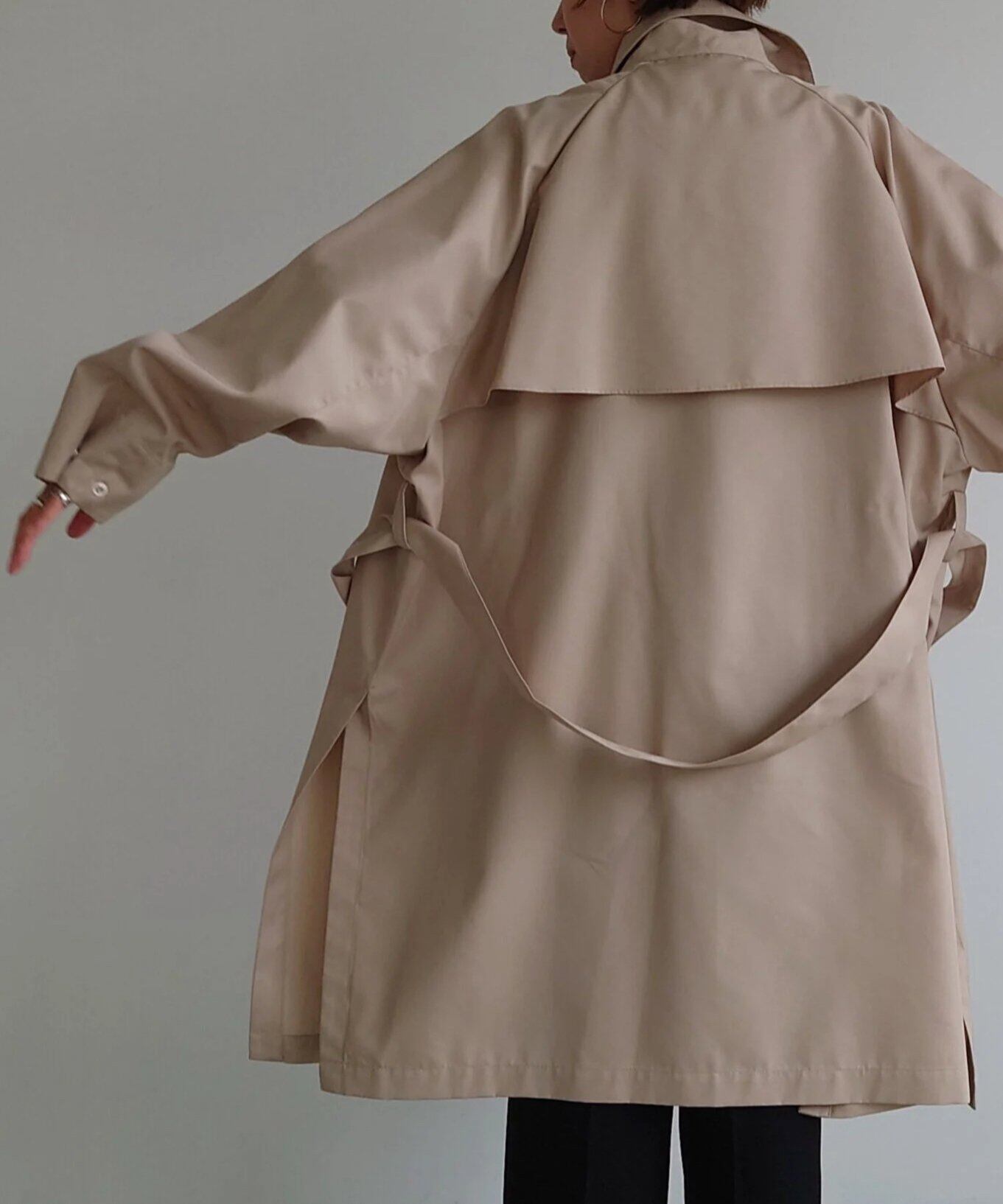 本当にベーシックなのに少し癖がありでも簡単にstylingが決まる!そして、着る方がそれぞれ色々と永く楽しめるトレンチコートが完成しました。