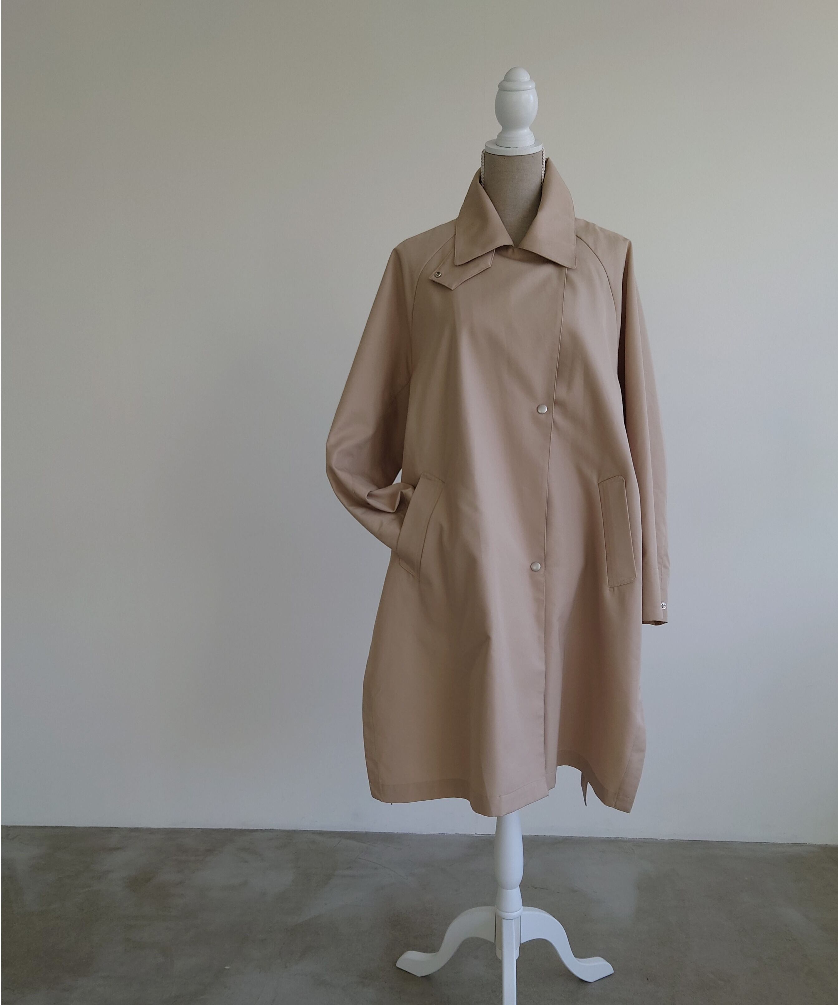 素材は永く愛用していただける日本製の生地で綿ポリエステルでシワになりにくく、撥水なので花粉も付きづらいので、春や秋にももちろん肌寒い朝晩や、梅雨時少し寒い時にも活躍するコートが完成しました。
