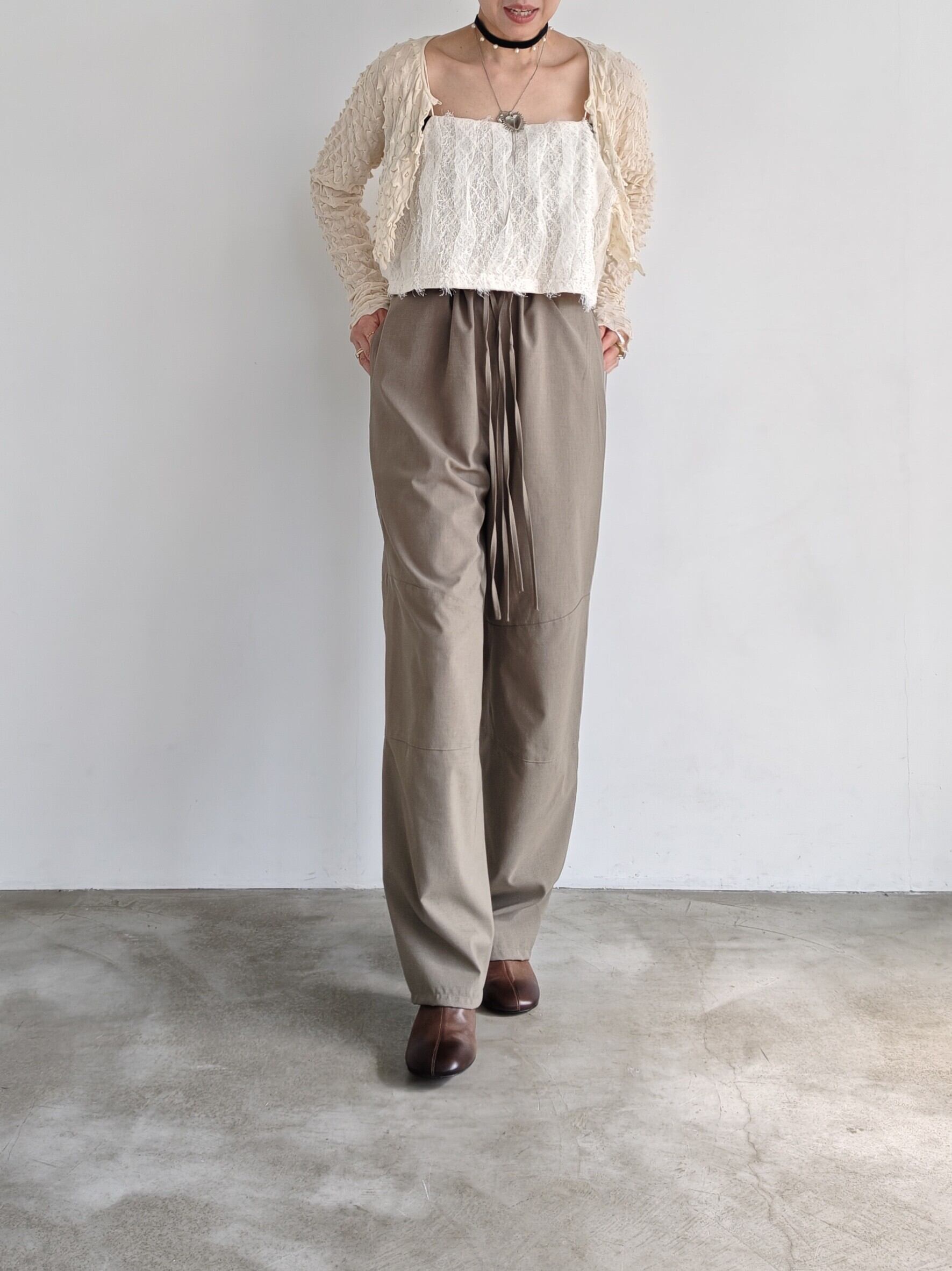 ウエストのコードでサイズ調整が幅広く可能なイージーパンツ