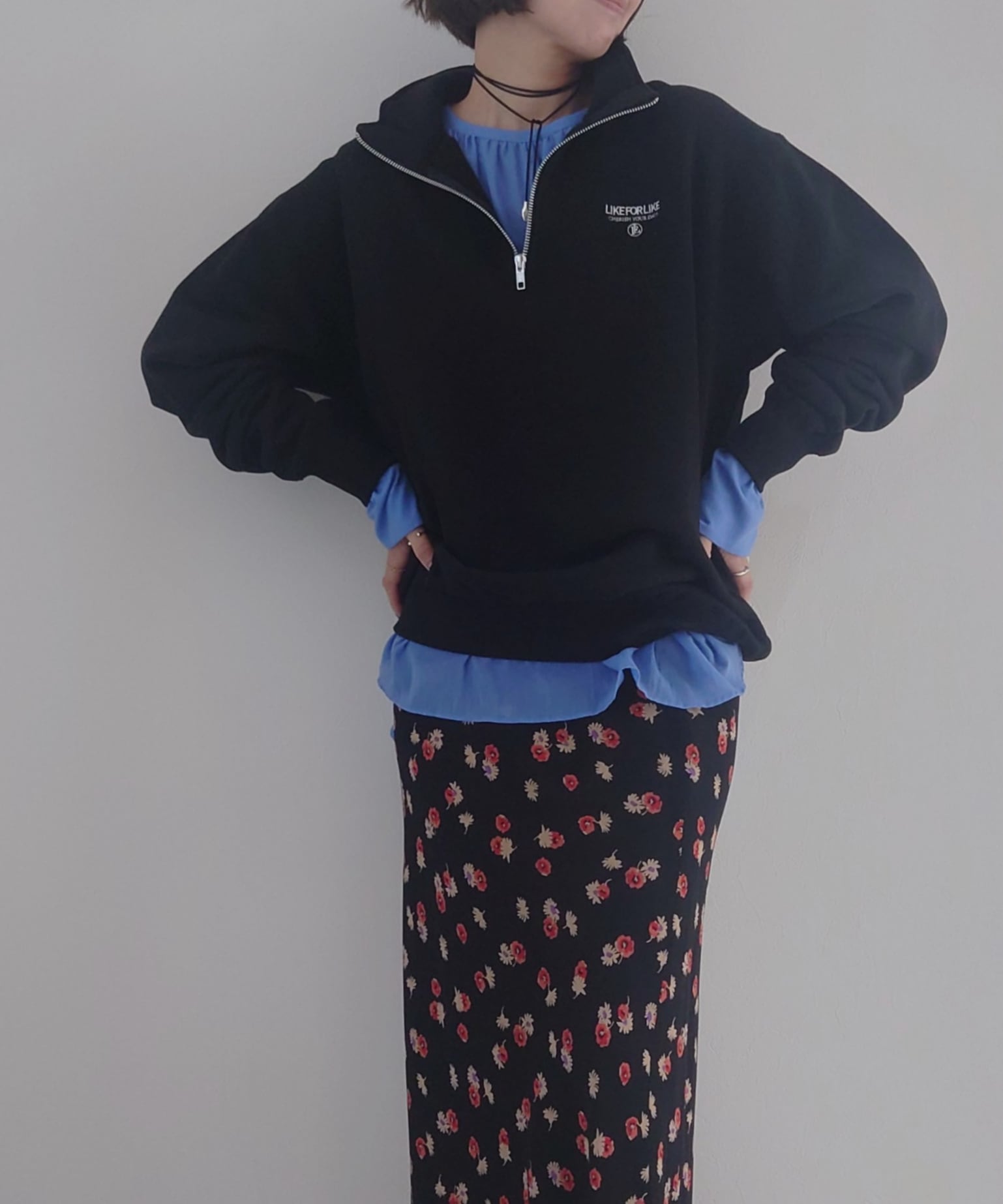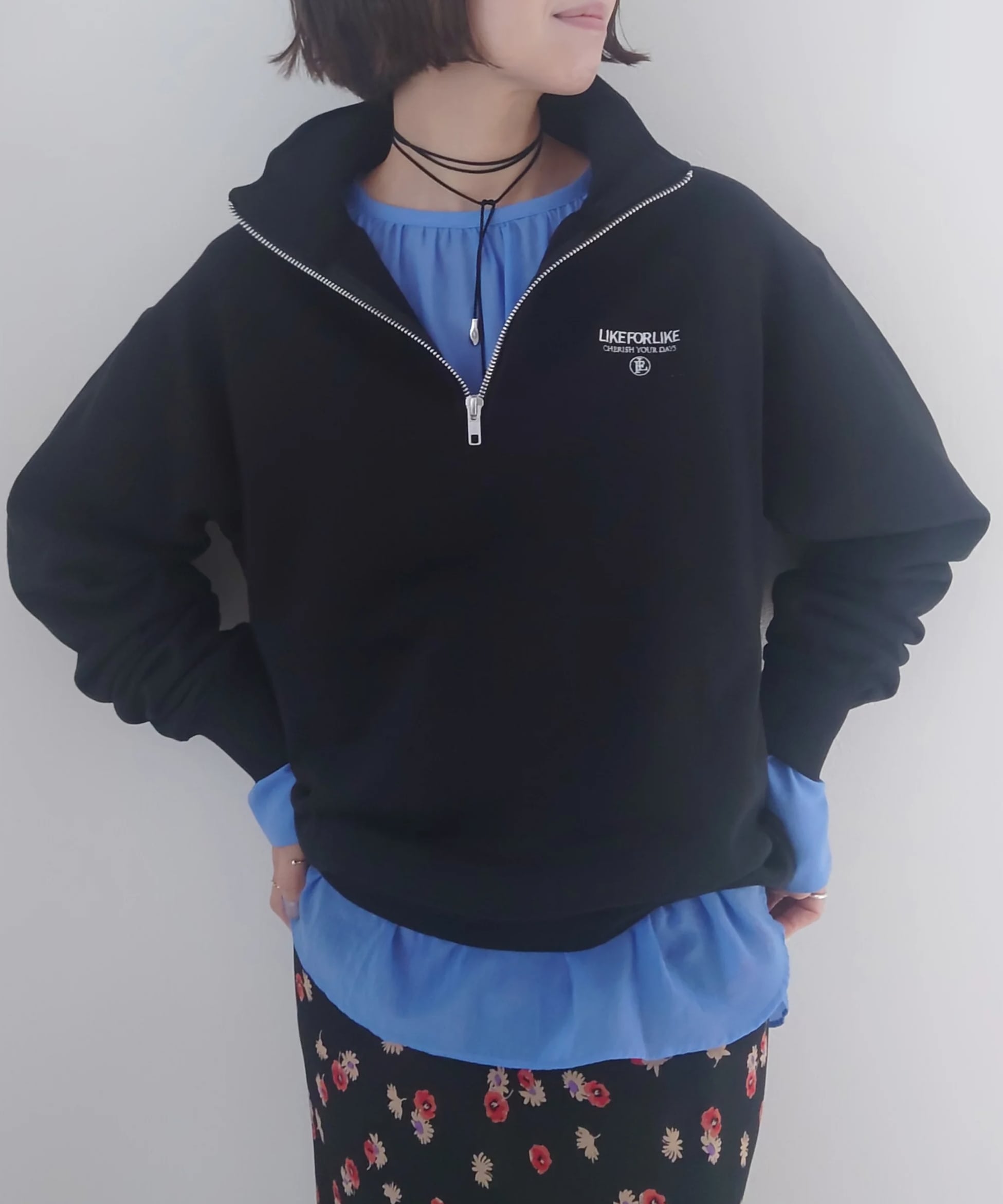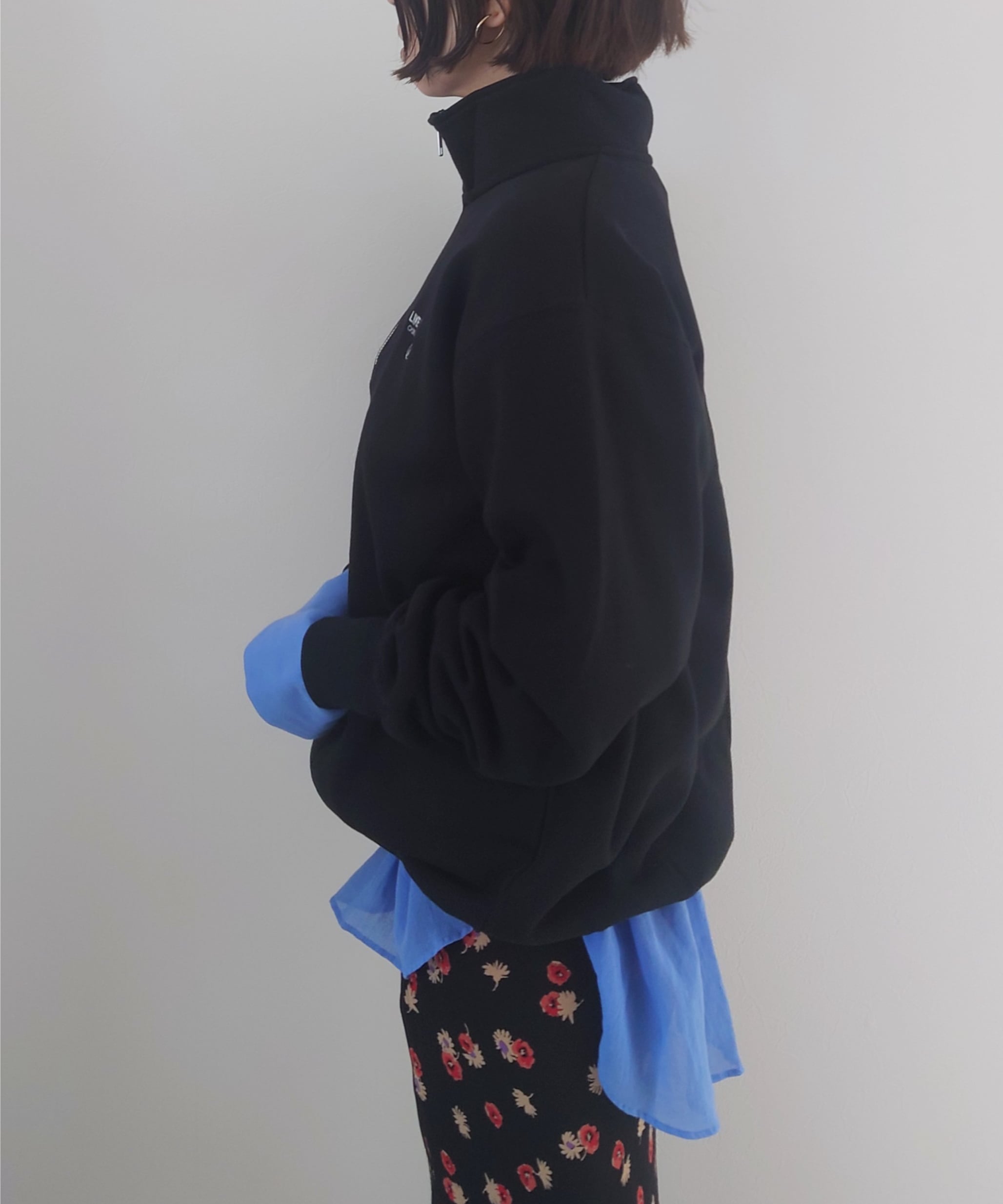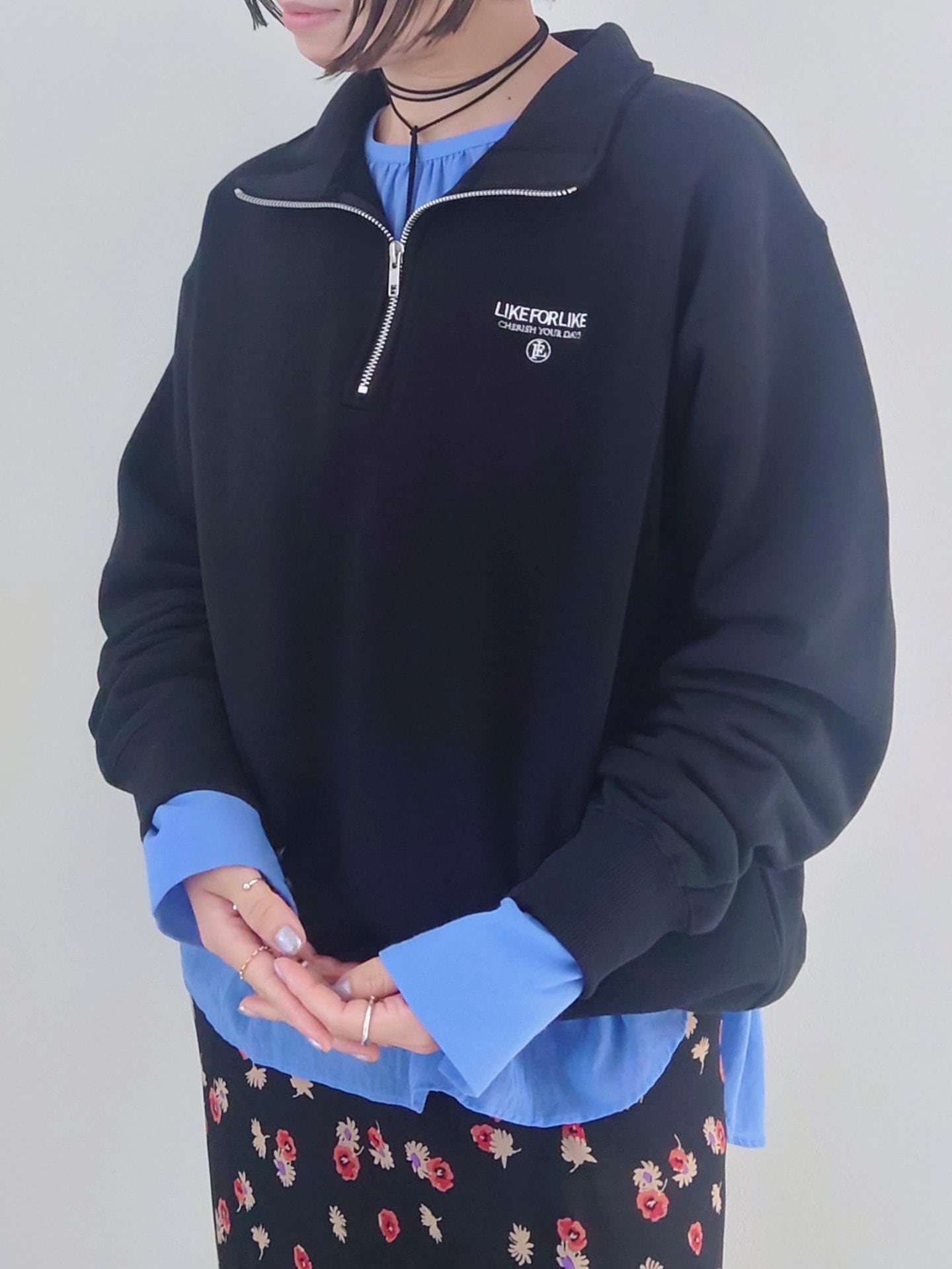 今まで作成しているアイテムとのレイヤードやstylingを楽しんで欲しいハーフジップスウエットとなります