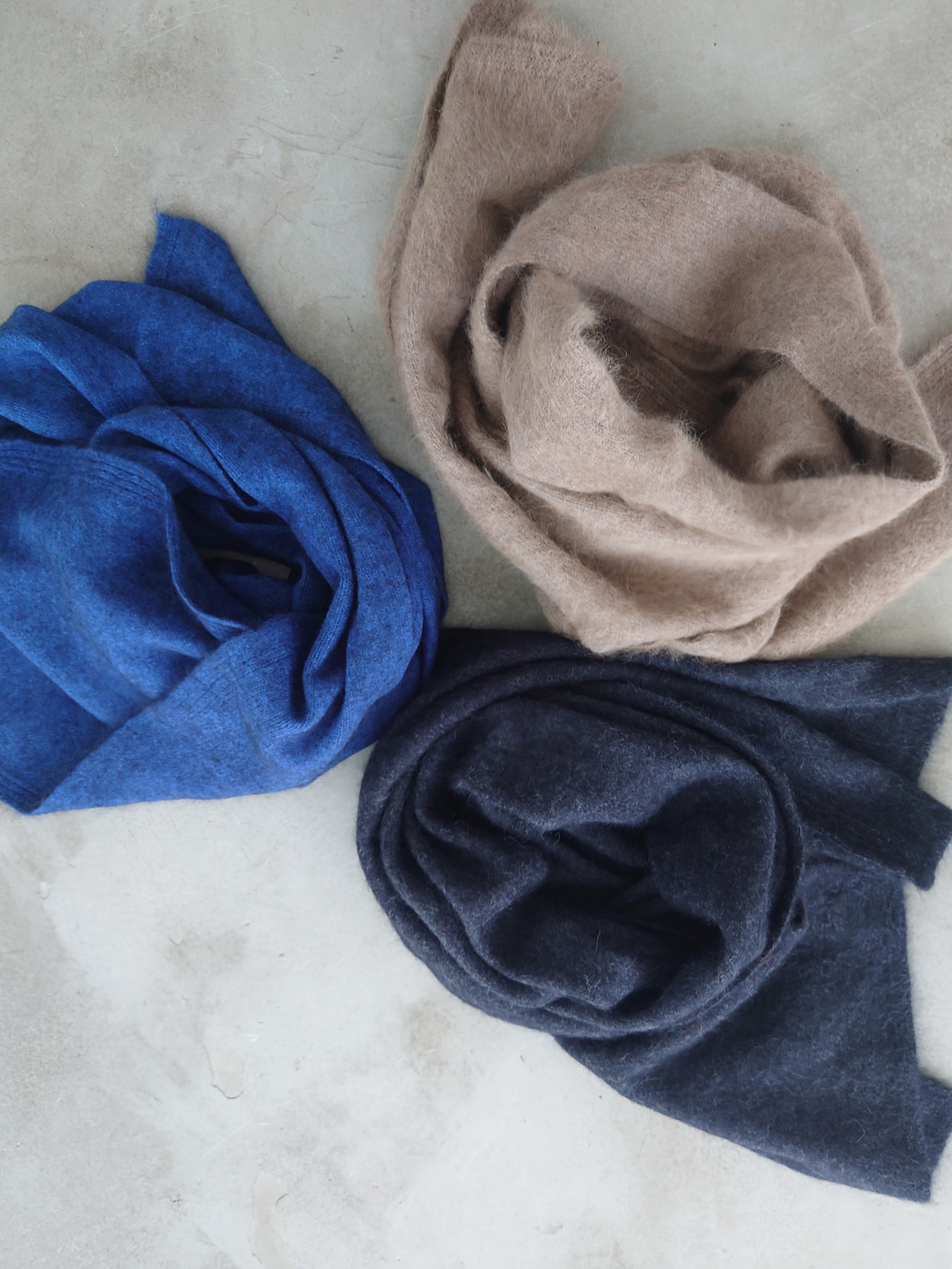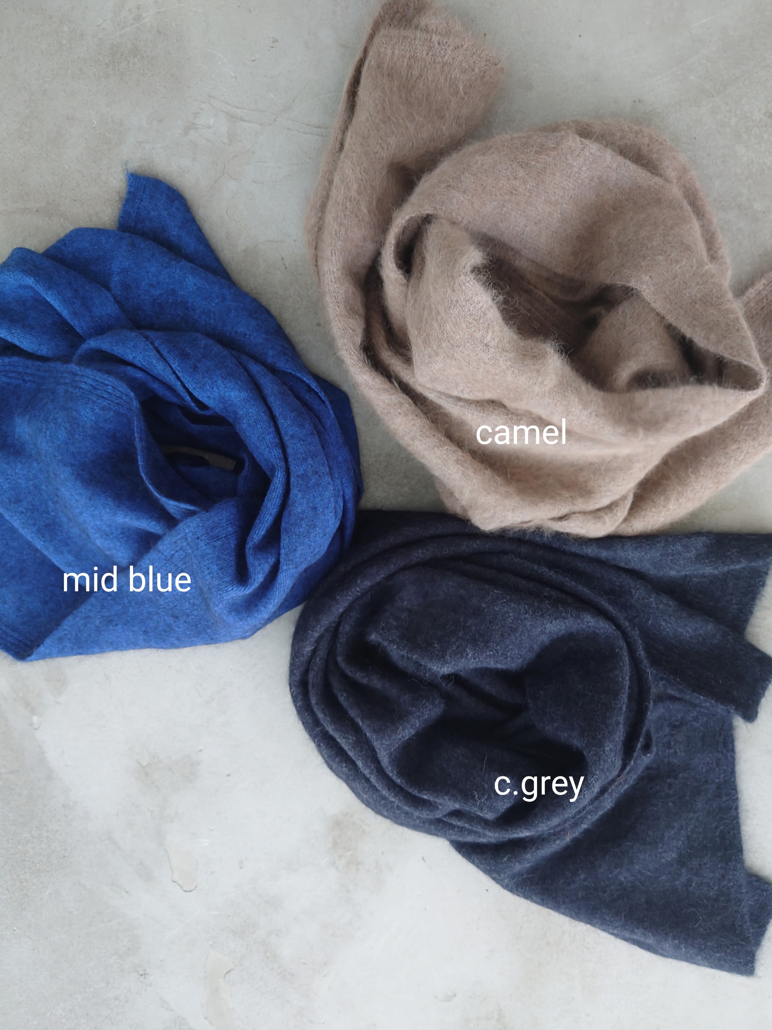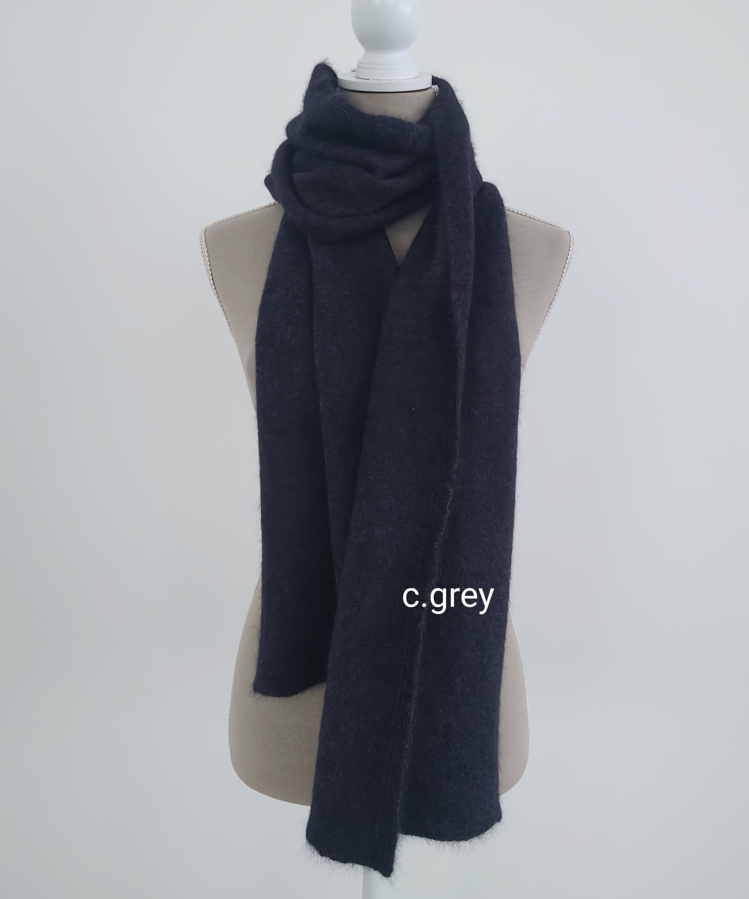 ラクーンの毛をブラッシングすることで取れた、とても軽くて暖かい素材を使用したマフラー。(動物にも環境にも優しいICCAWを取得しているメーカーの素材です)静電気防止加工をしているので静電気が起こりにくい仕様になっています。