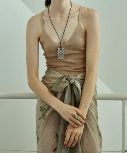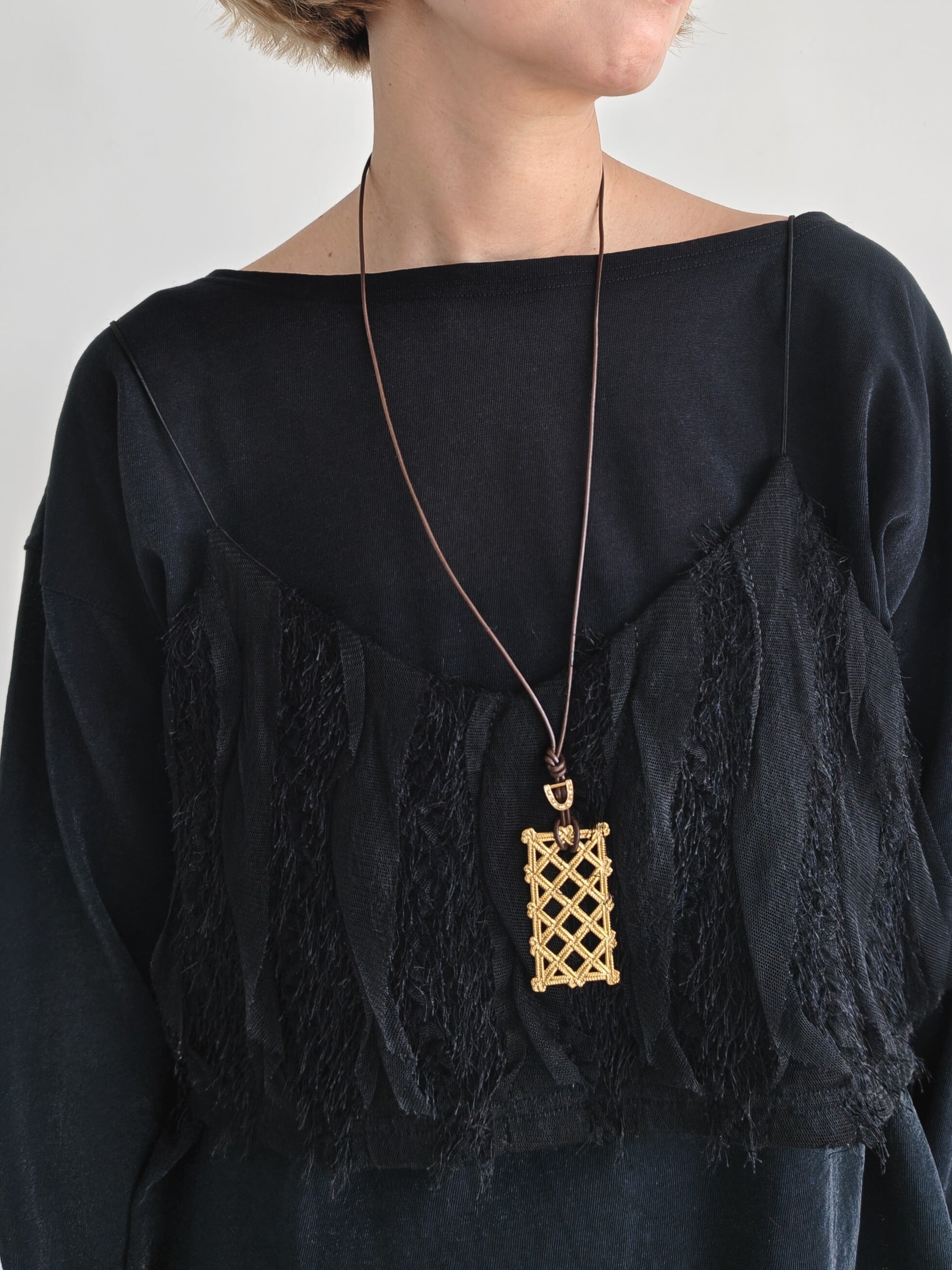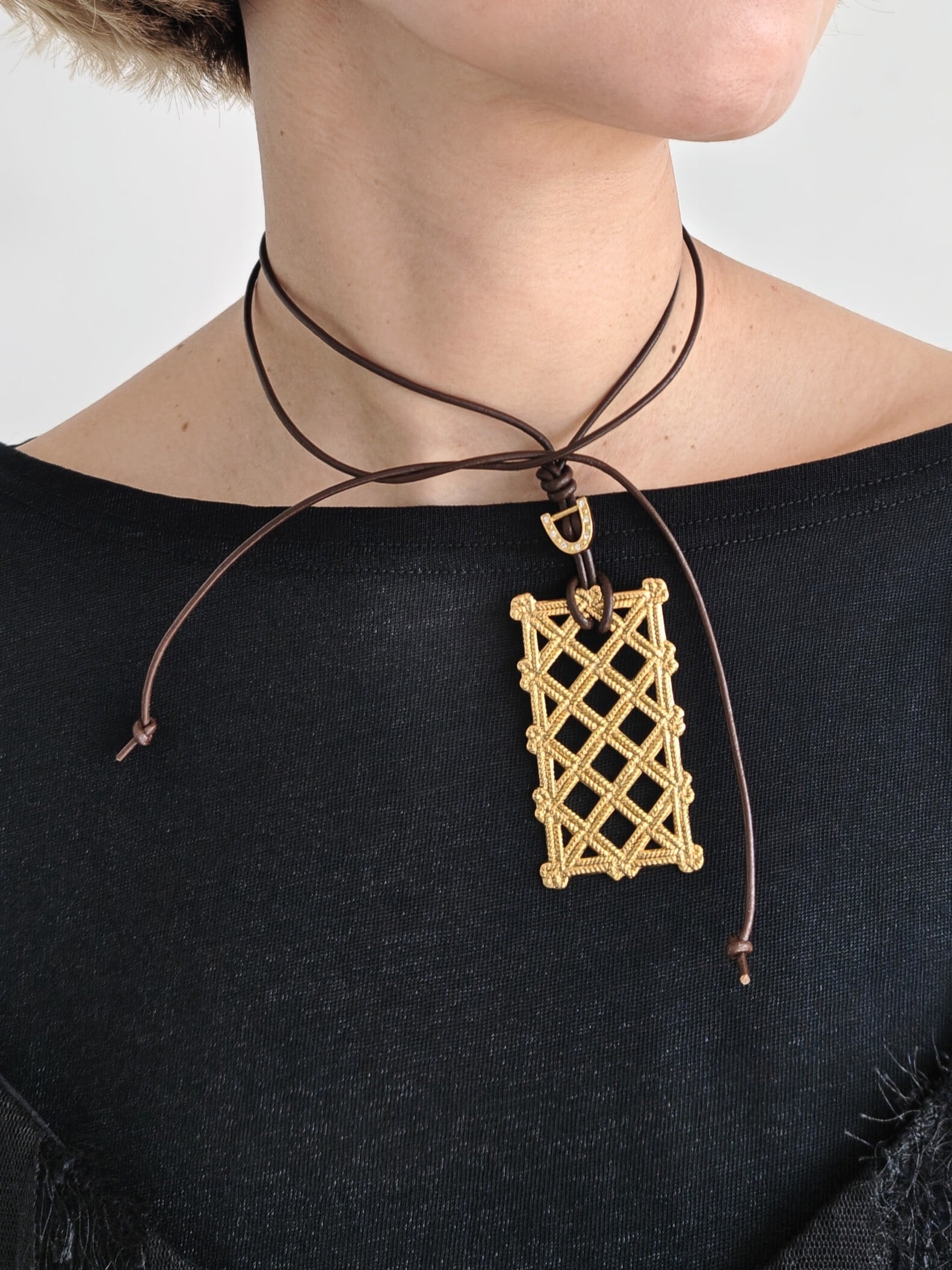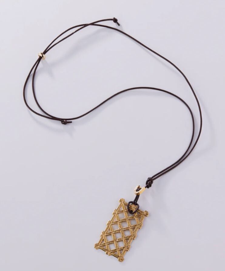 【ADER.bijoux】VINTAGE METAL mesh pendantフランスの真鍮プレスの技術で作られたヴィンテージライクなメタルパーツにに革紐を通したアジャスターペンダント。