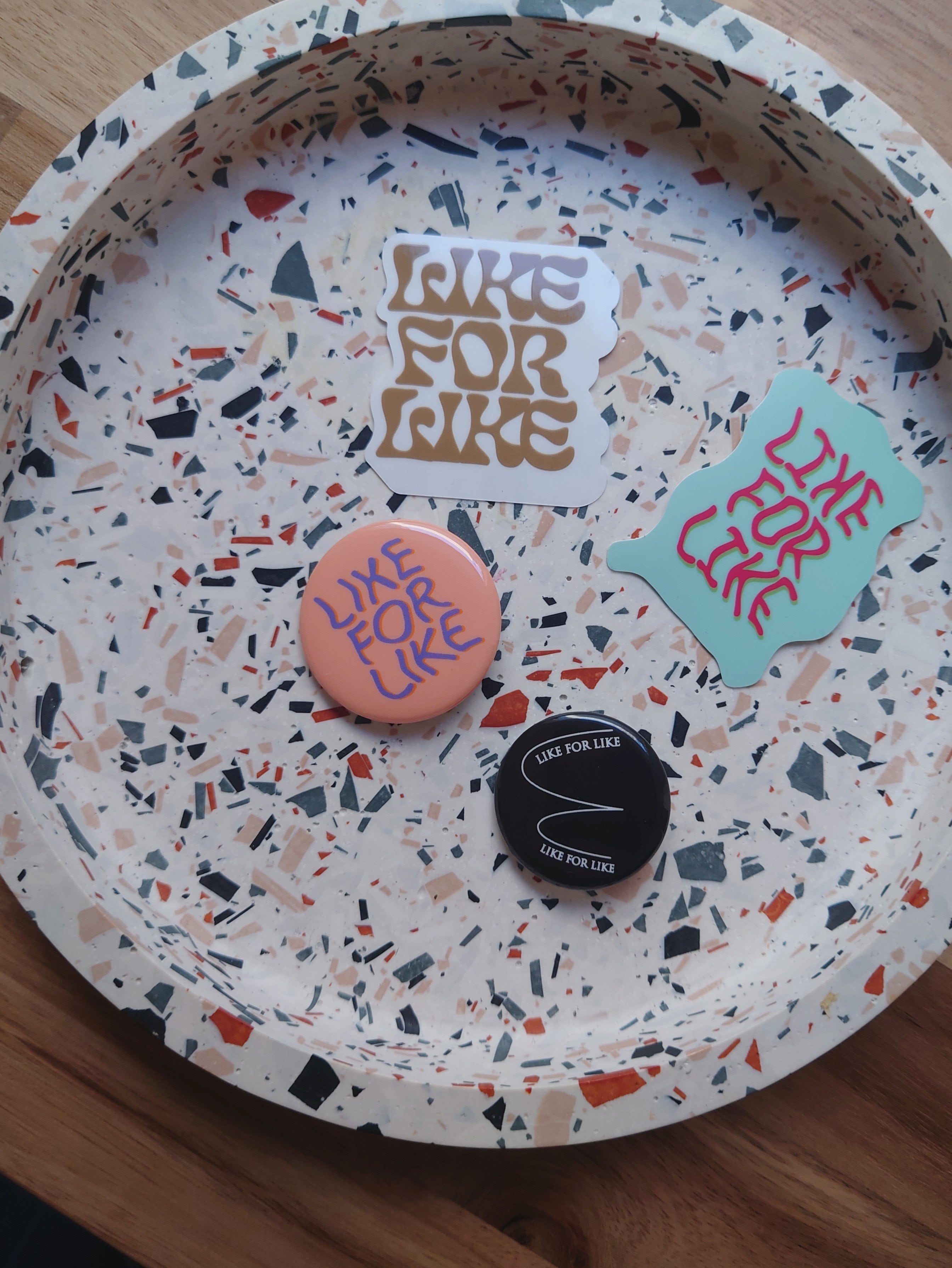 【Original】缶バッチと屋内外どちらでも貼れるステッカーのセットとなります