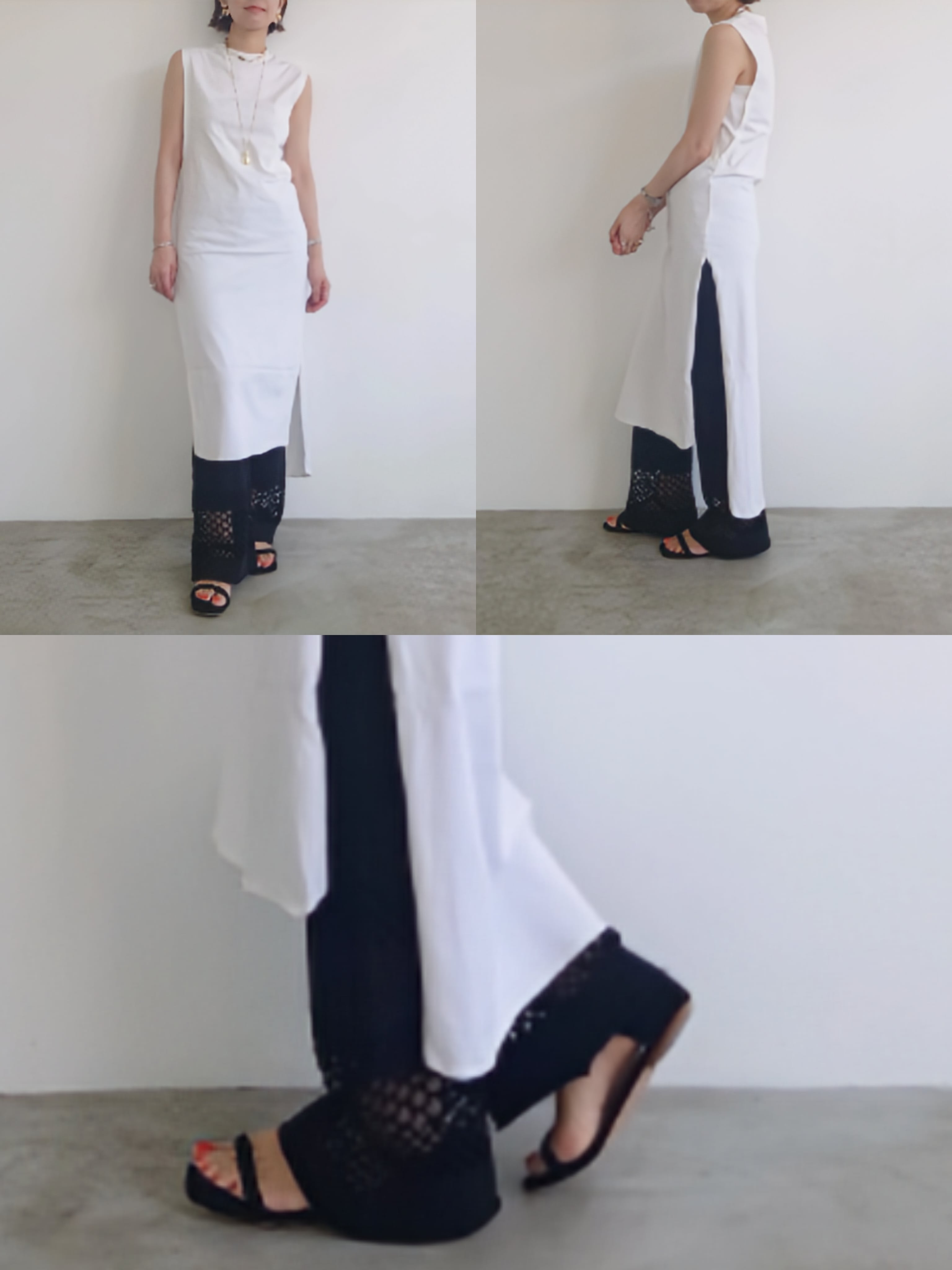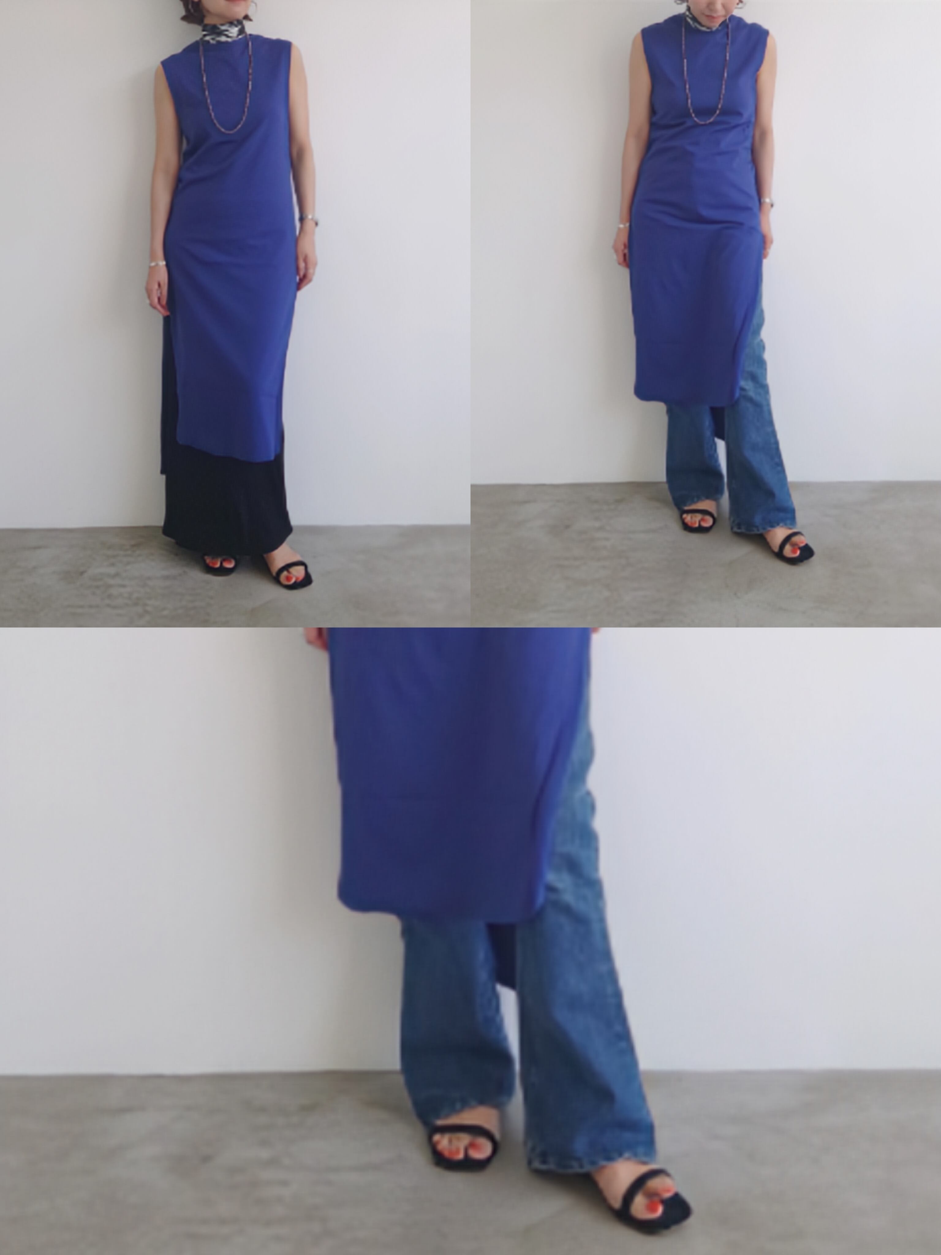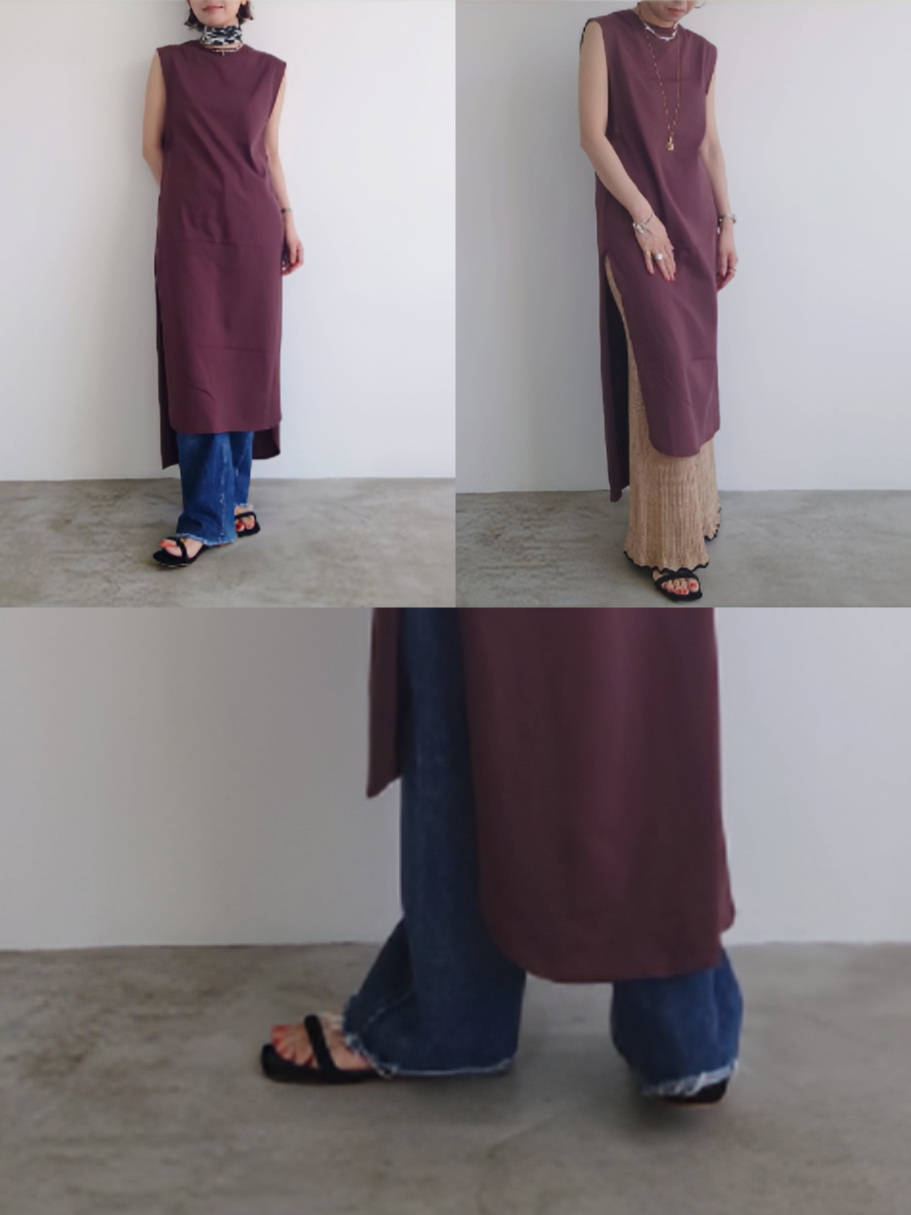 ノースリーブなのに腕周りがスッキリと見えるシルエットで