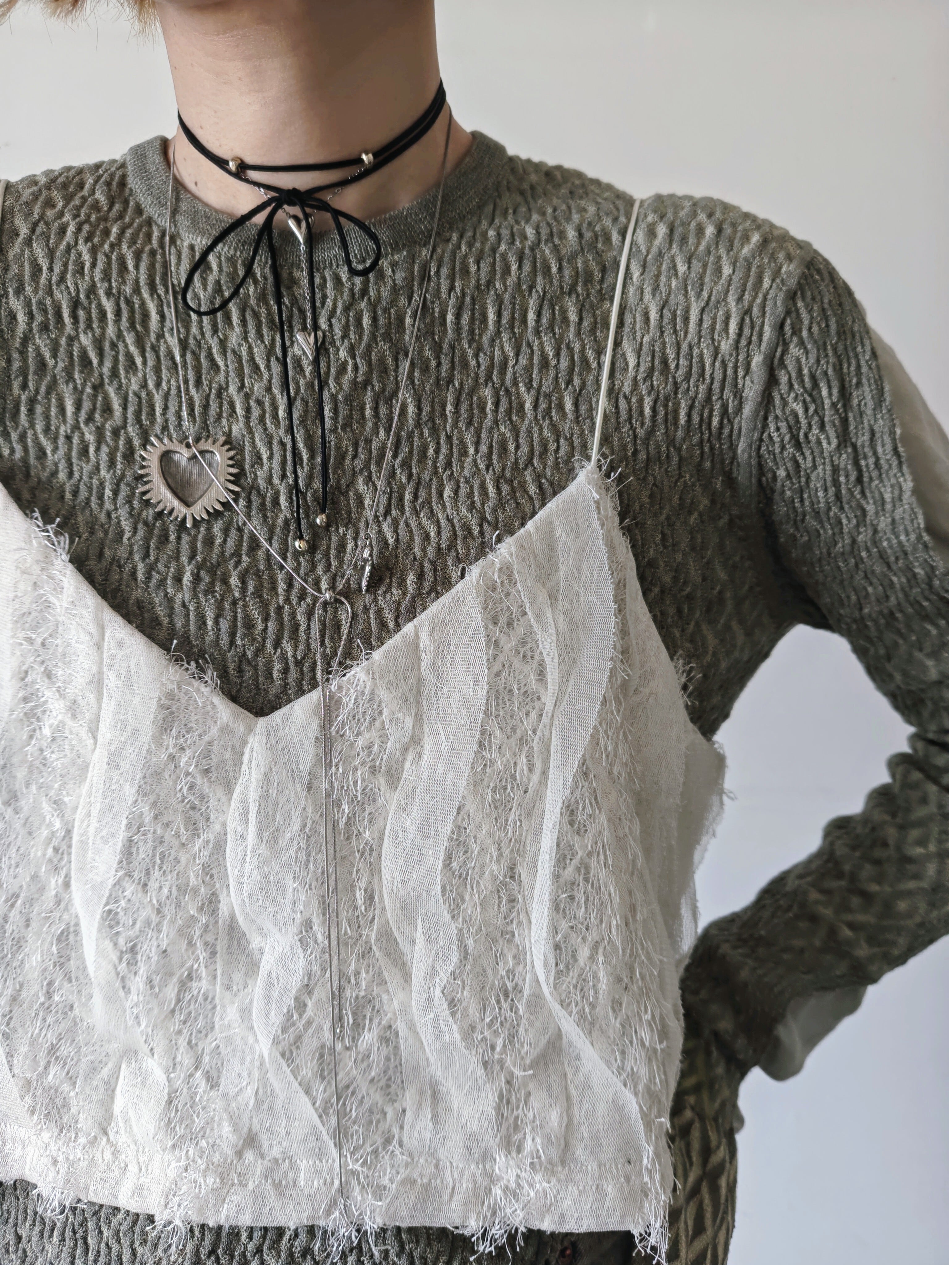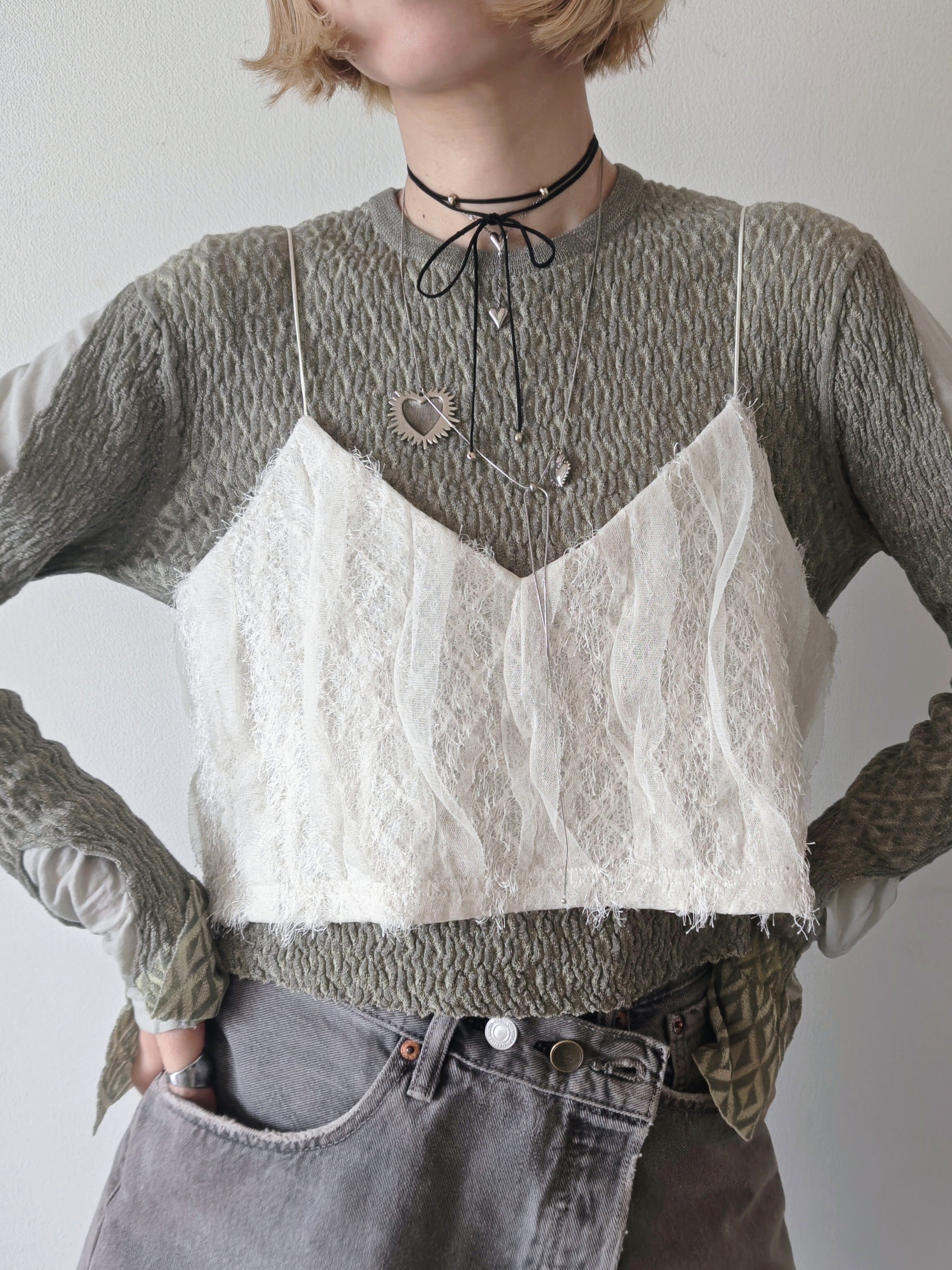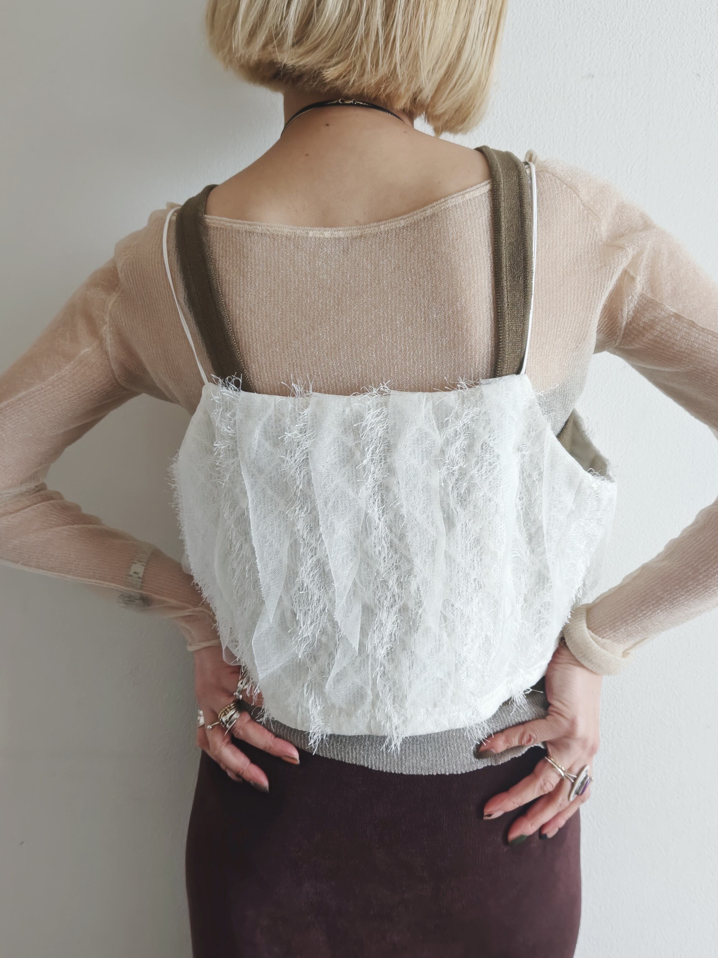 【LIKE FOR LIKE】2wayフリンジジャガードキャミソール OffWhite