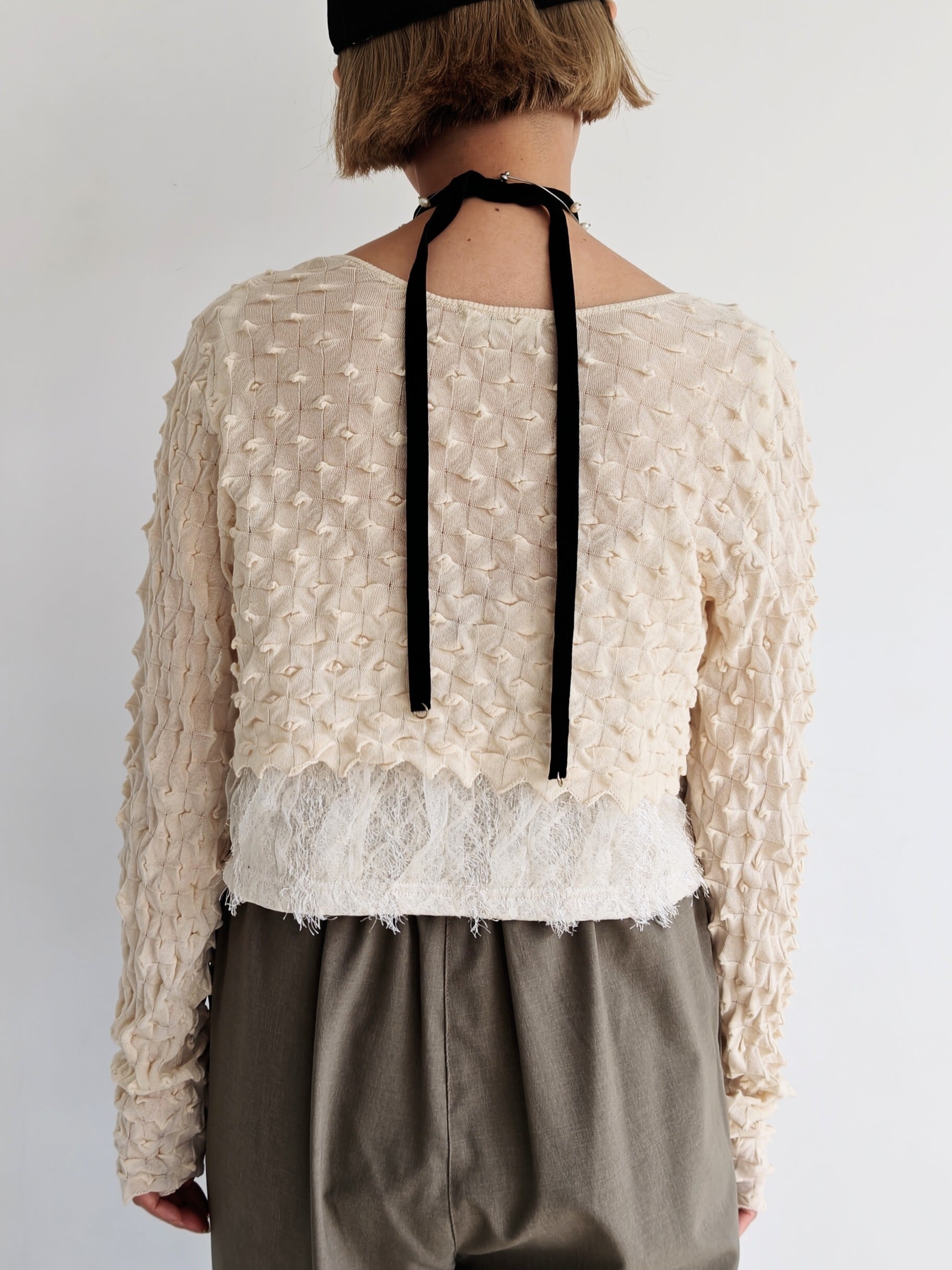 繊細に編み地を切り替えることで格子柄のようなニットの模様が浮かぶ技巧的なデザインの大人気シリーズ!