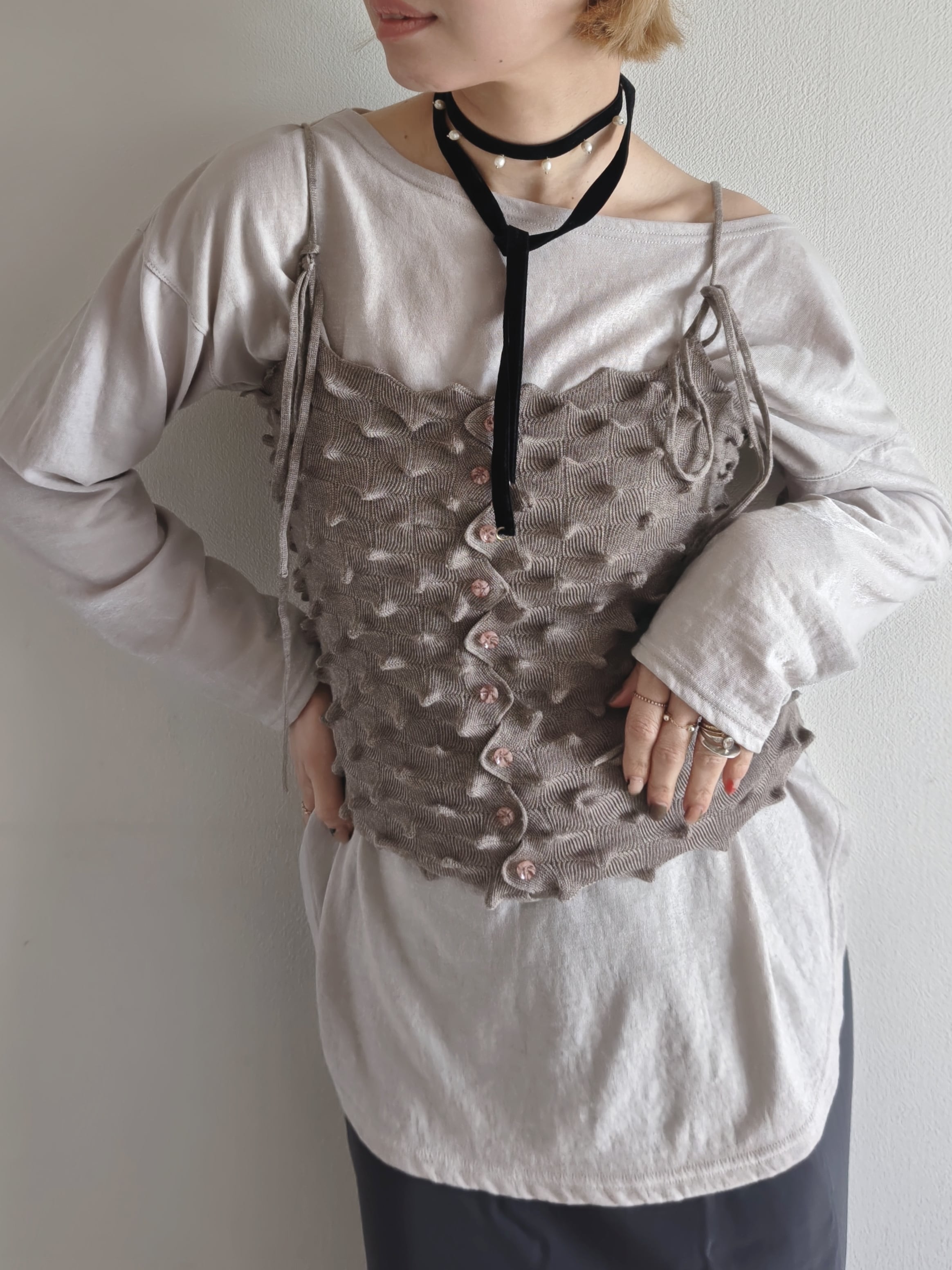 【LIKE FOR LIKE】Sheer shiny tops LightGrey