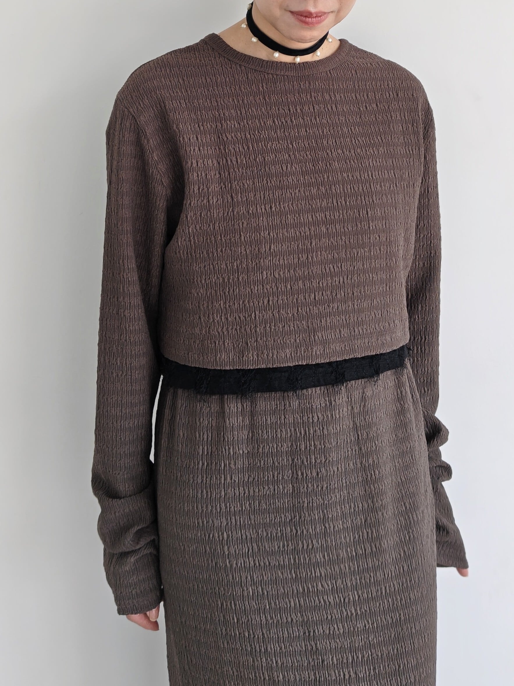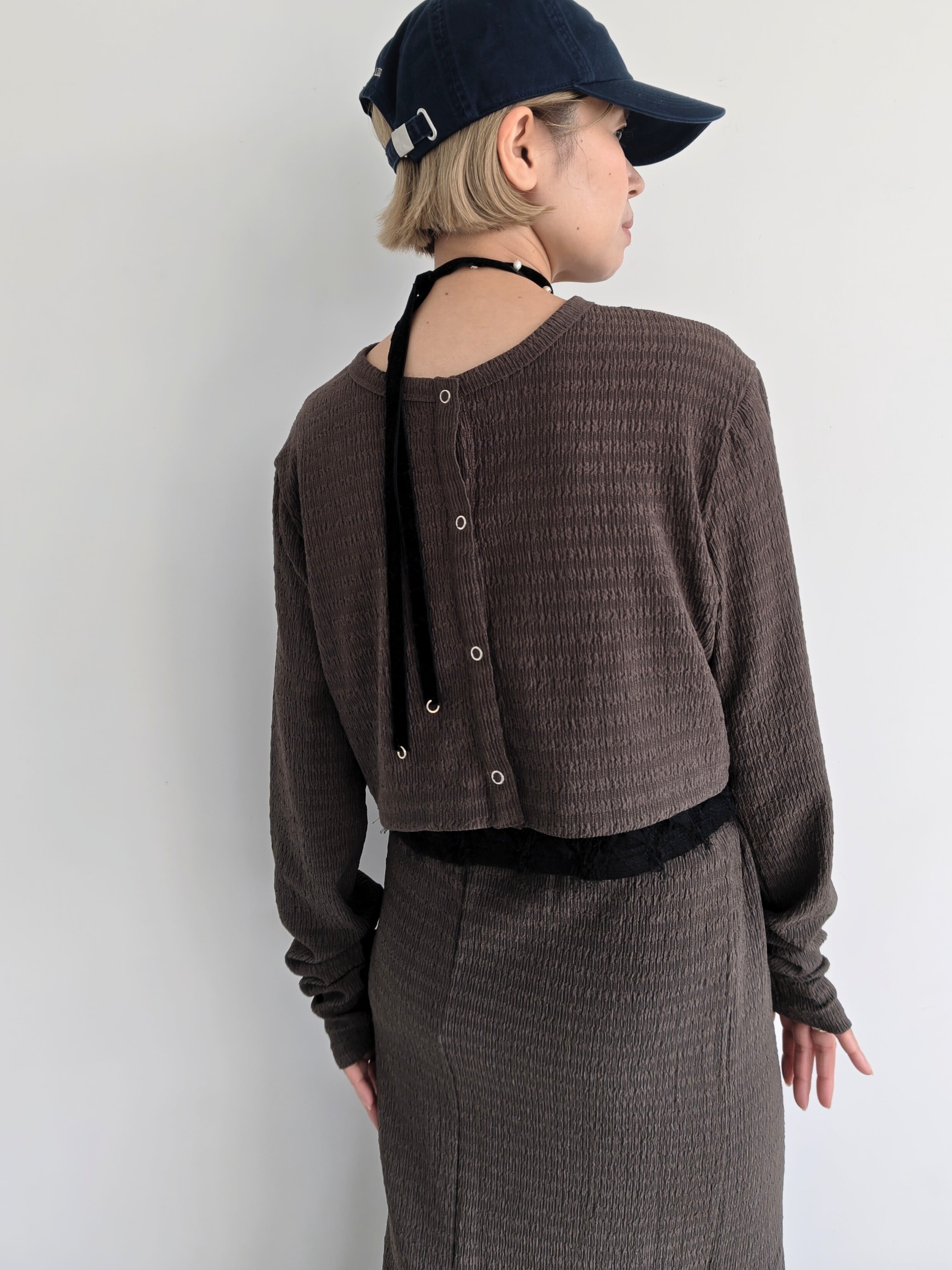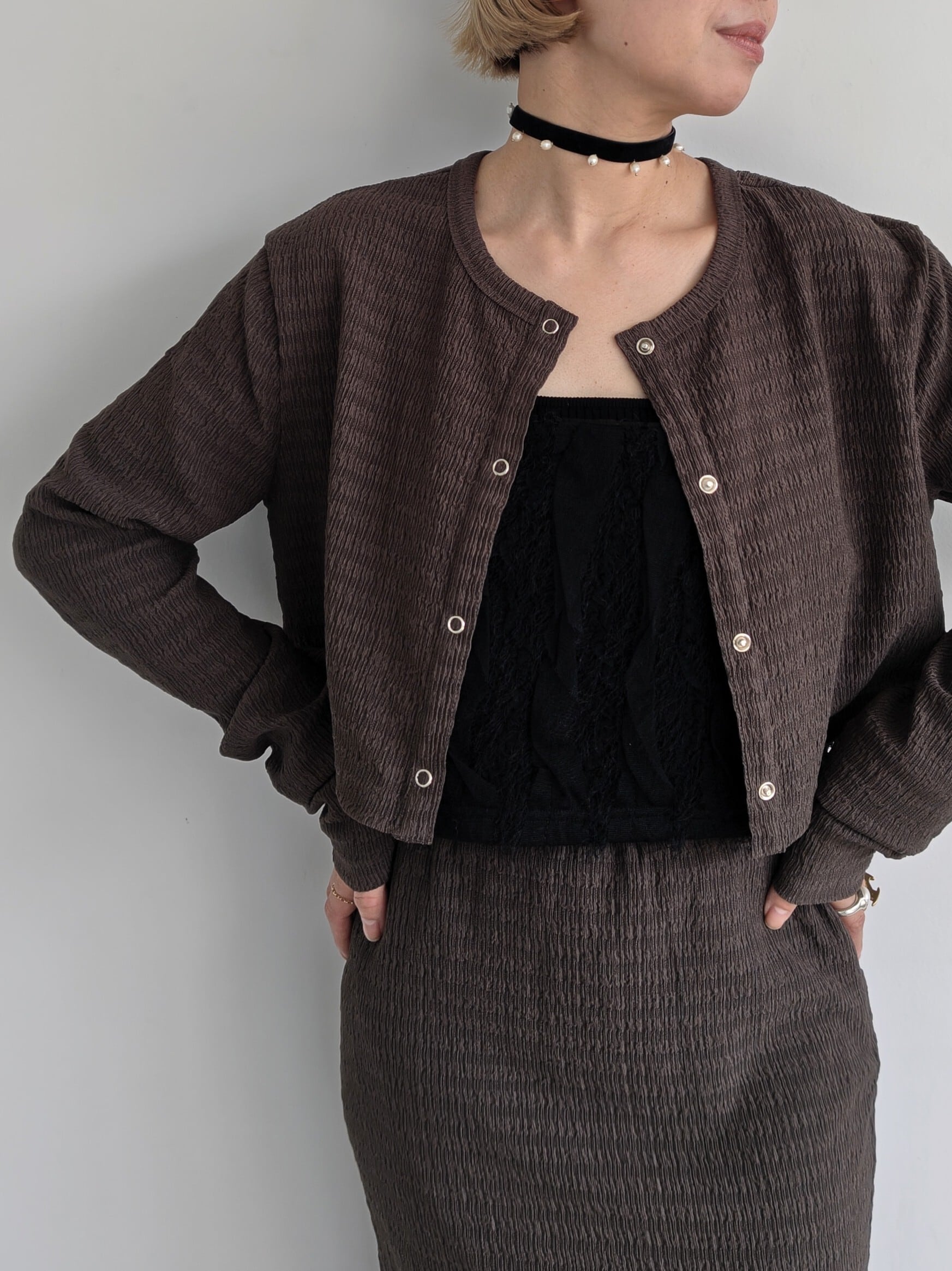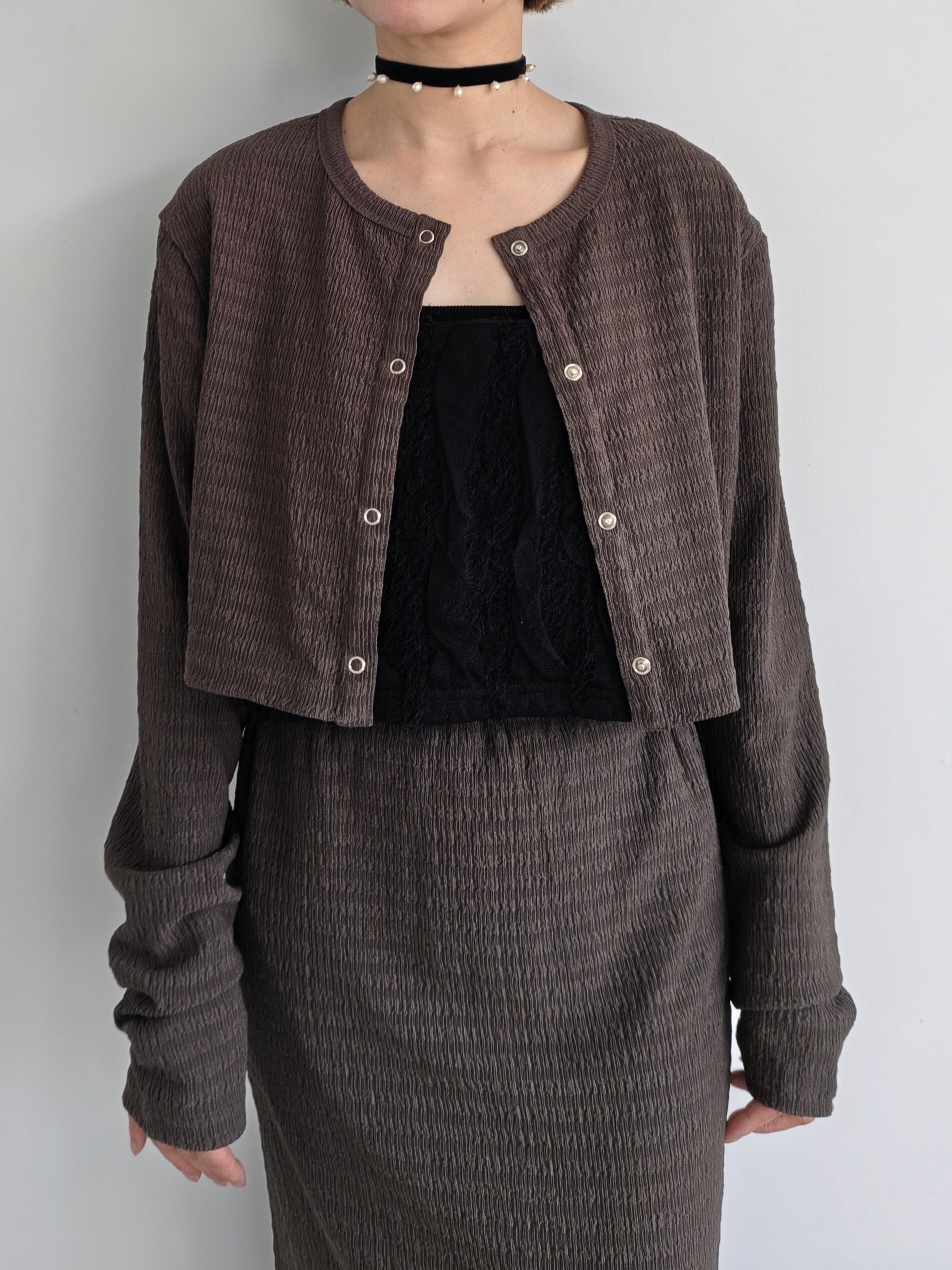 【LIKEFORLIKE】 2way Shirred short cardigan Brown