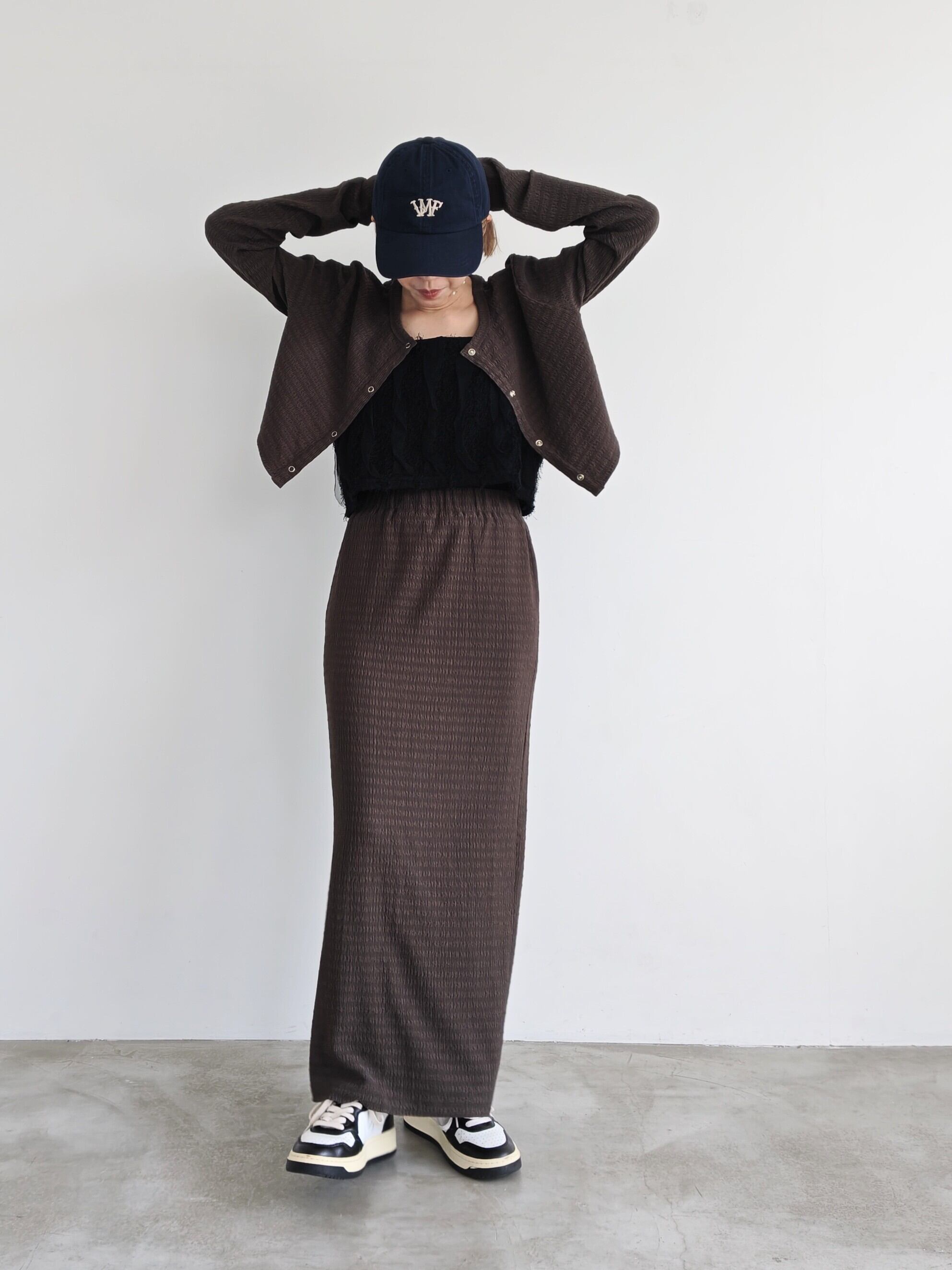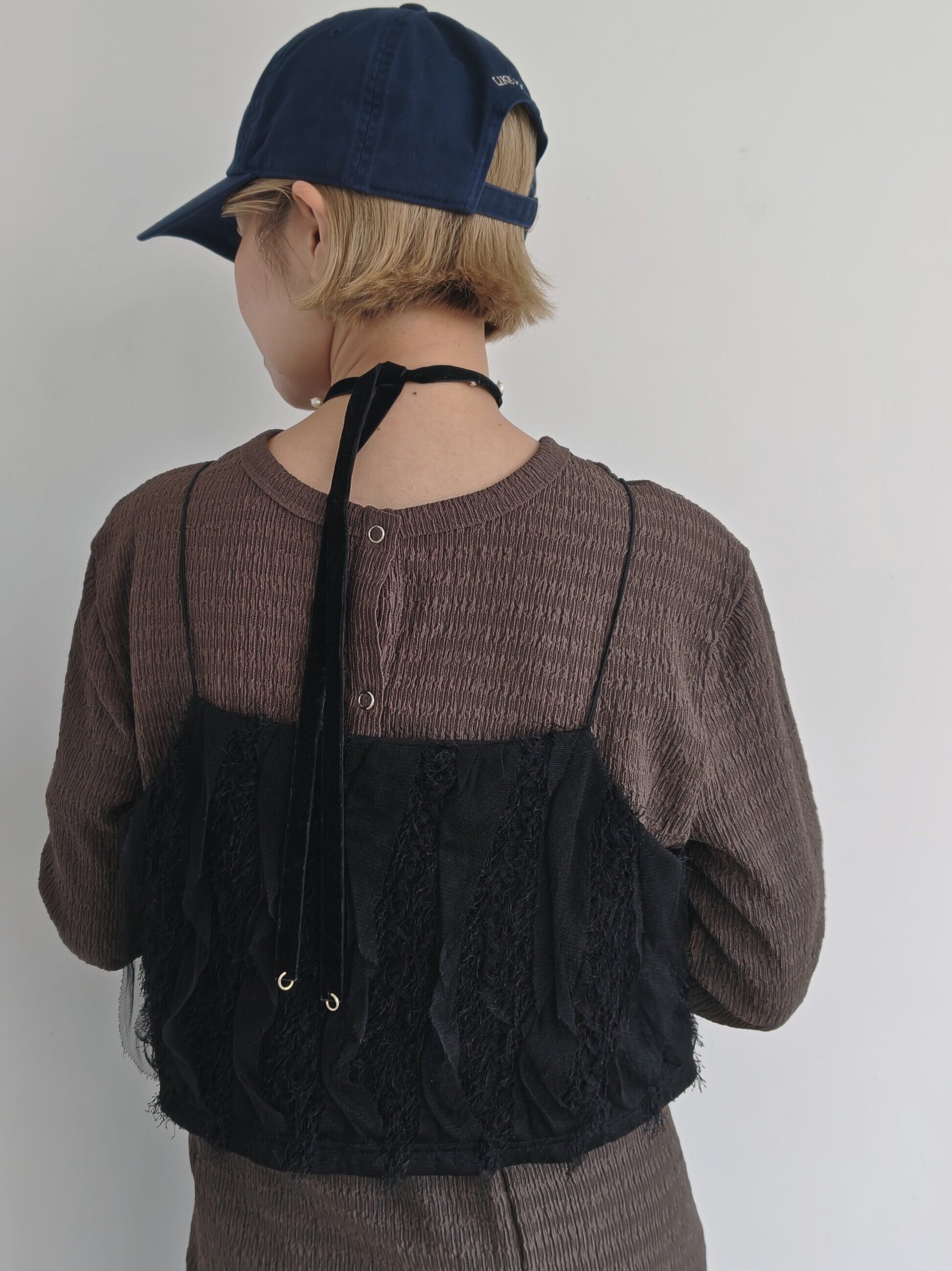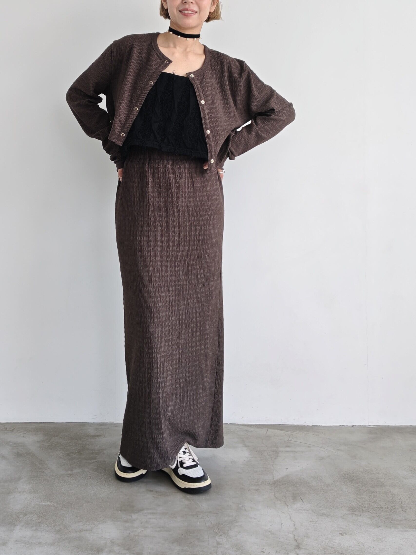 【LIKEFORLIKE】 2way Shirred short cardigan Brown
