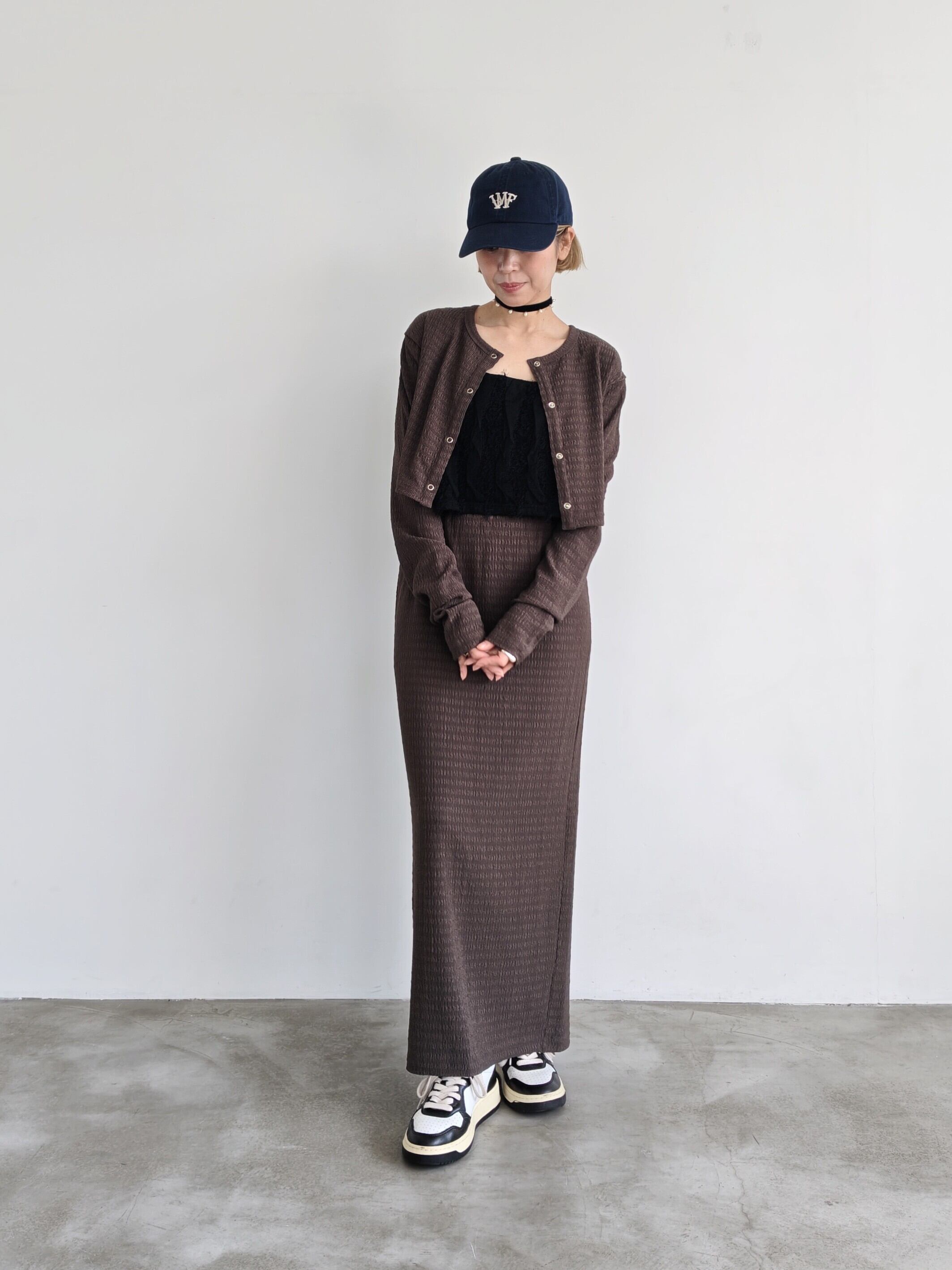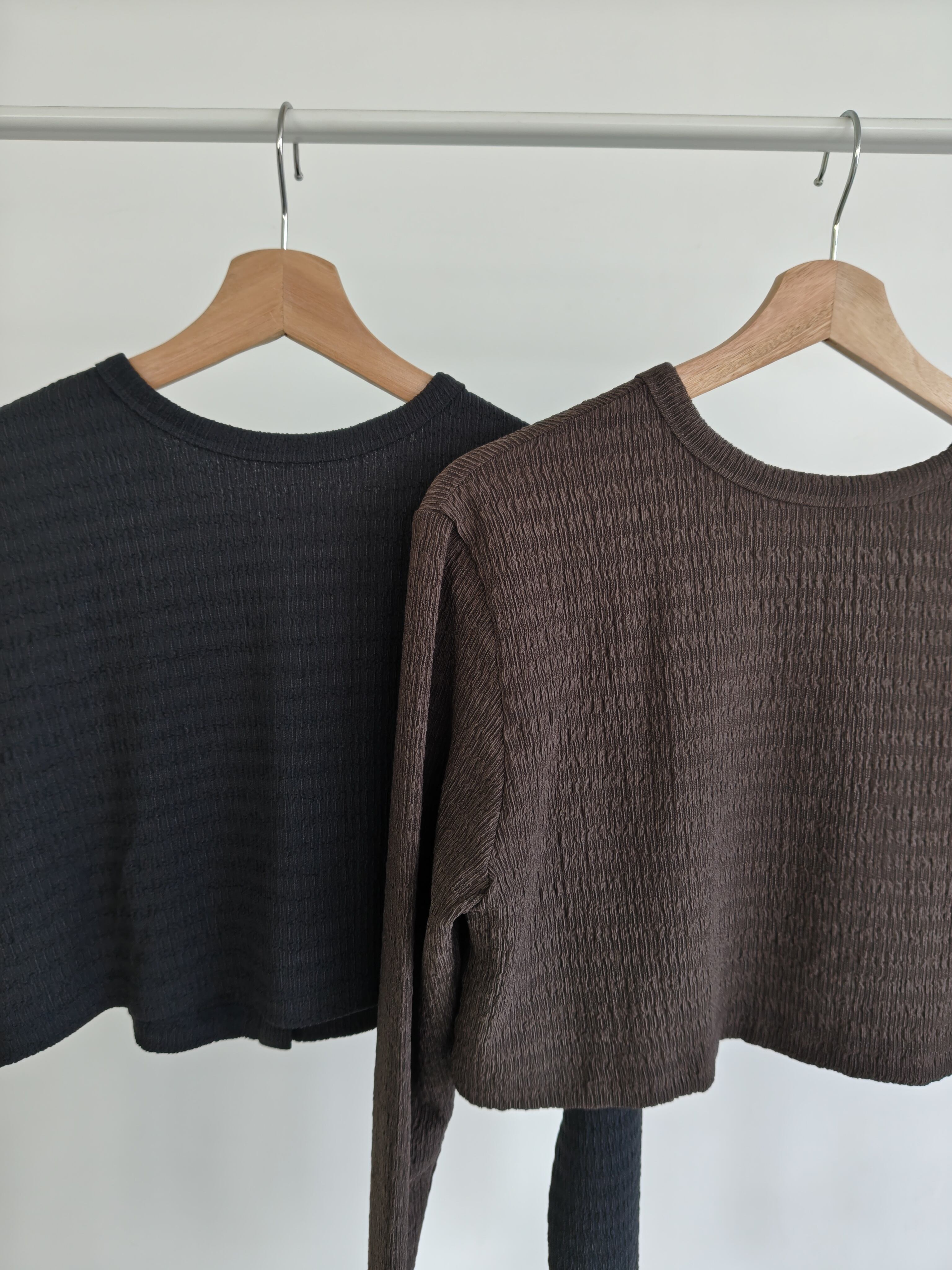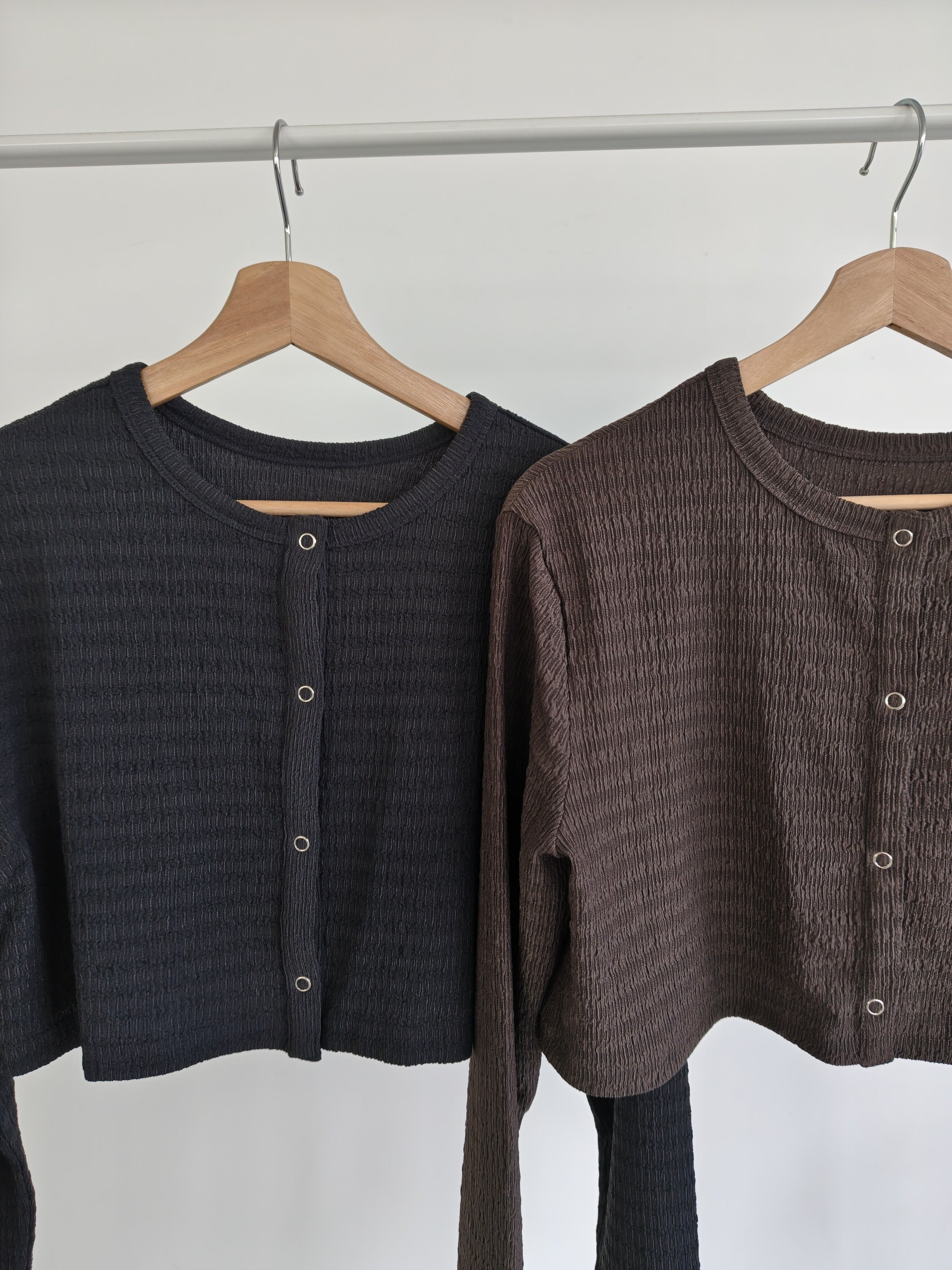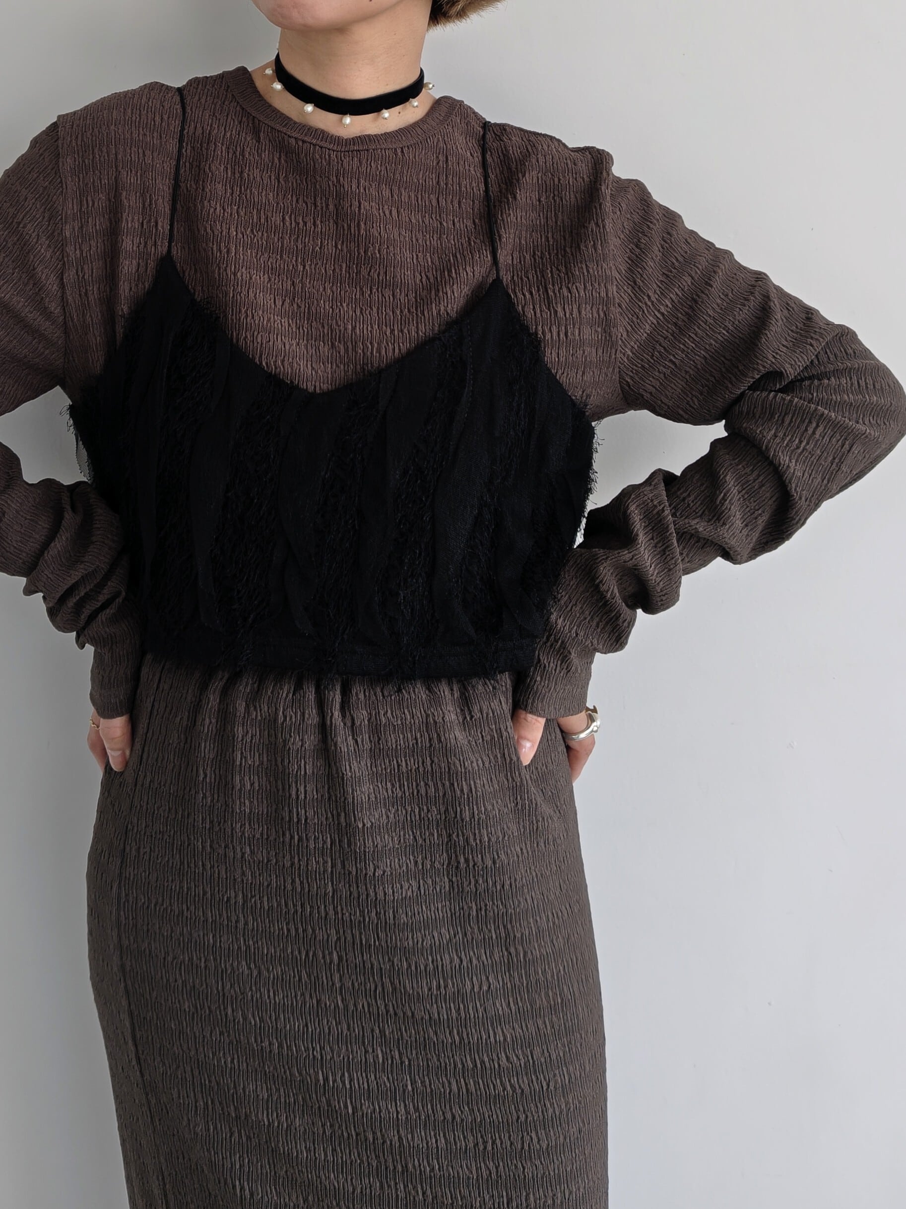 【LIKEFORLIKE】 2way Shirred short cardigan Brown