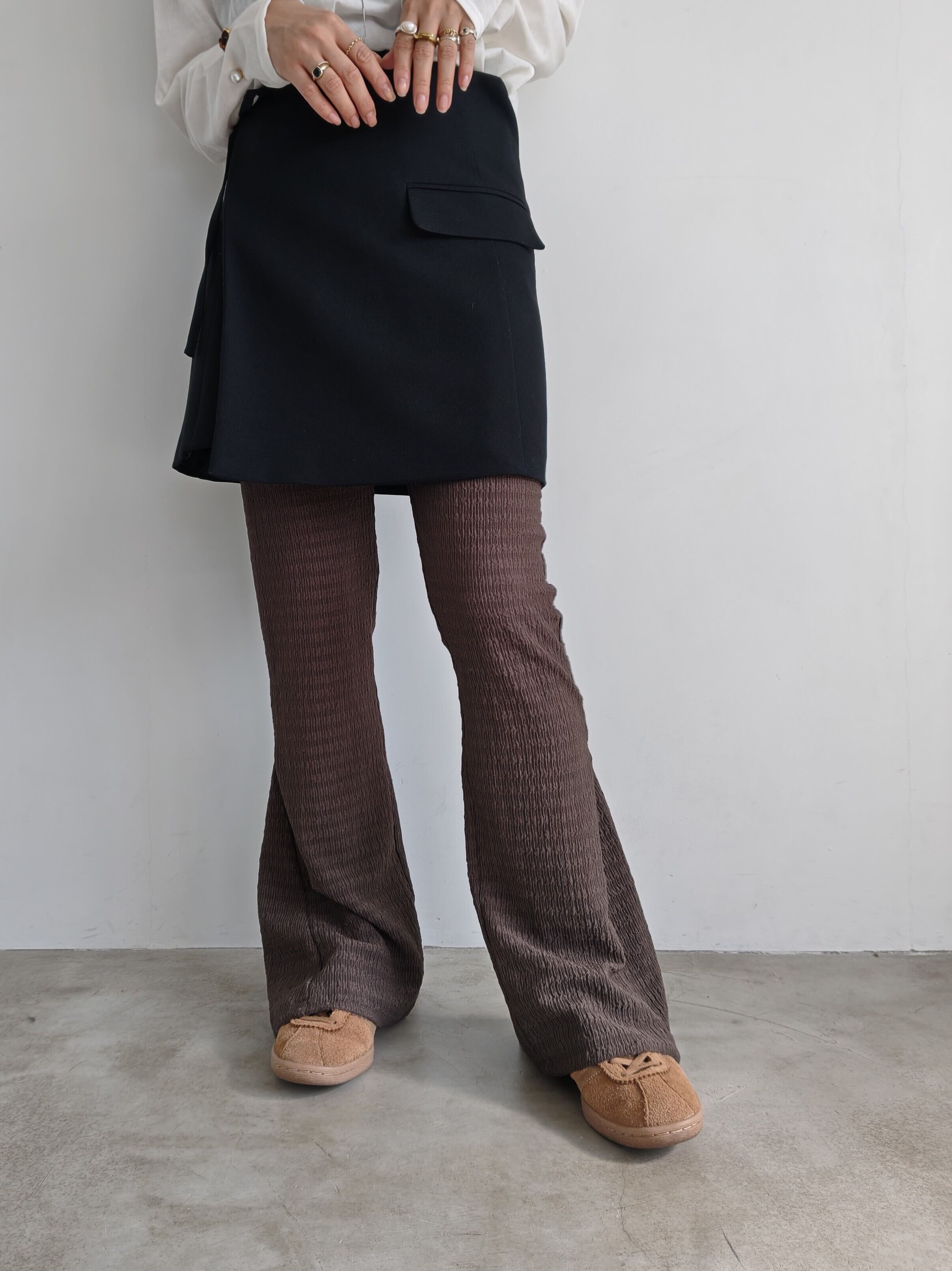 普段からお声も多く私自身もずっと欲しかったレイヤードにも便利なフレアの楽チンで綺麗なフレアレギンスパンツ!LIKEFORLIKEでも作成している巻きスカートとのレイヤードやSheer shiny topとのバランスやワンピースとのレイヤードアイテムにも、