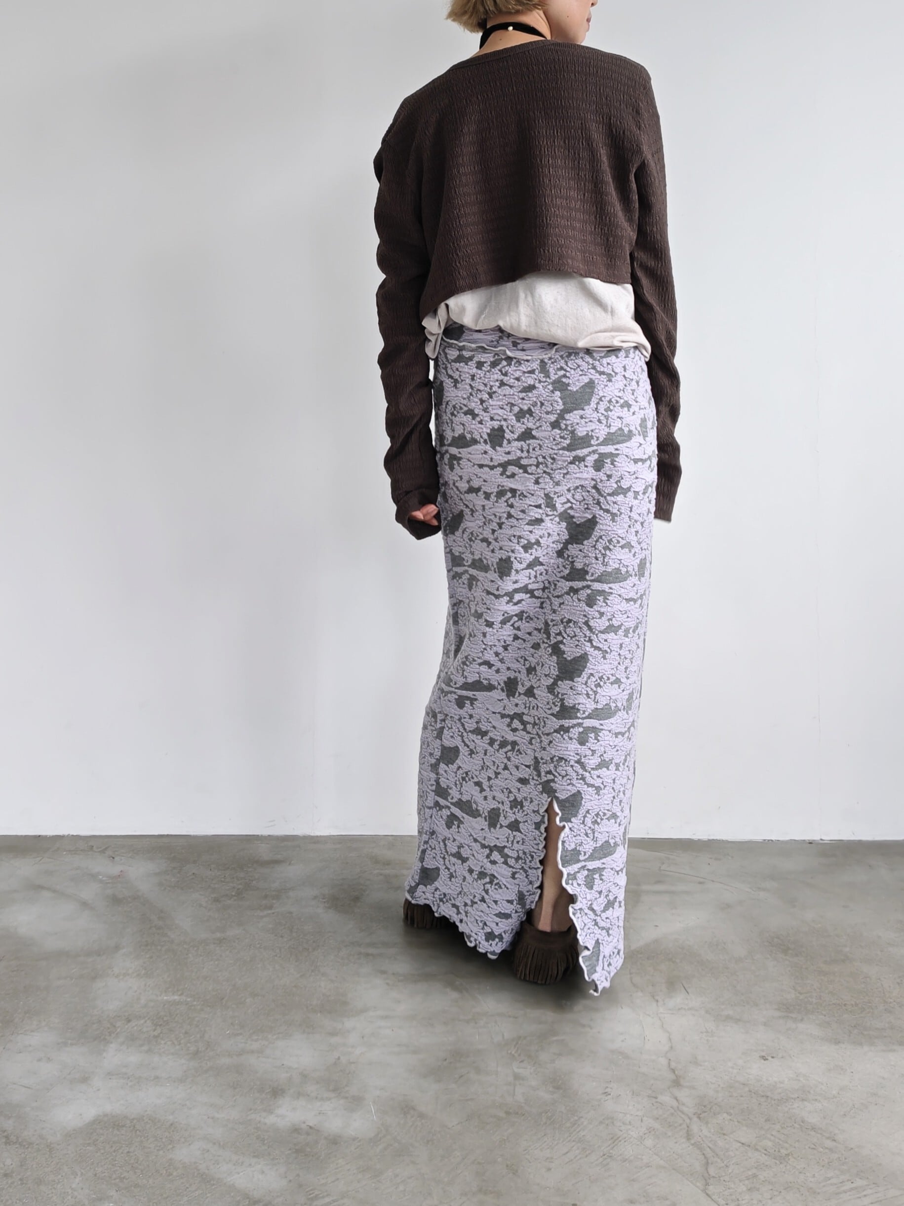 甘さを添えるメロー始末の裾やウール素材を使用した軽くてあたたかみのある風合いに着心地の良さもおすすめのスカートとなります。