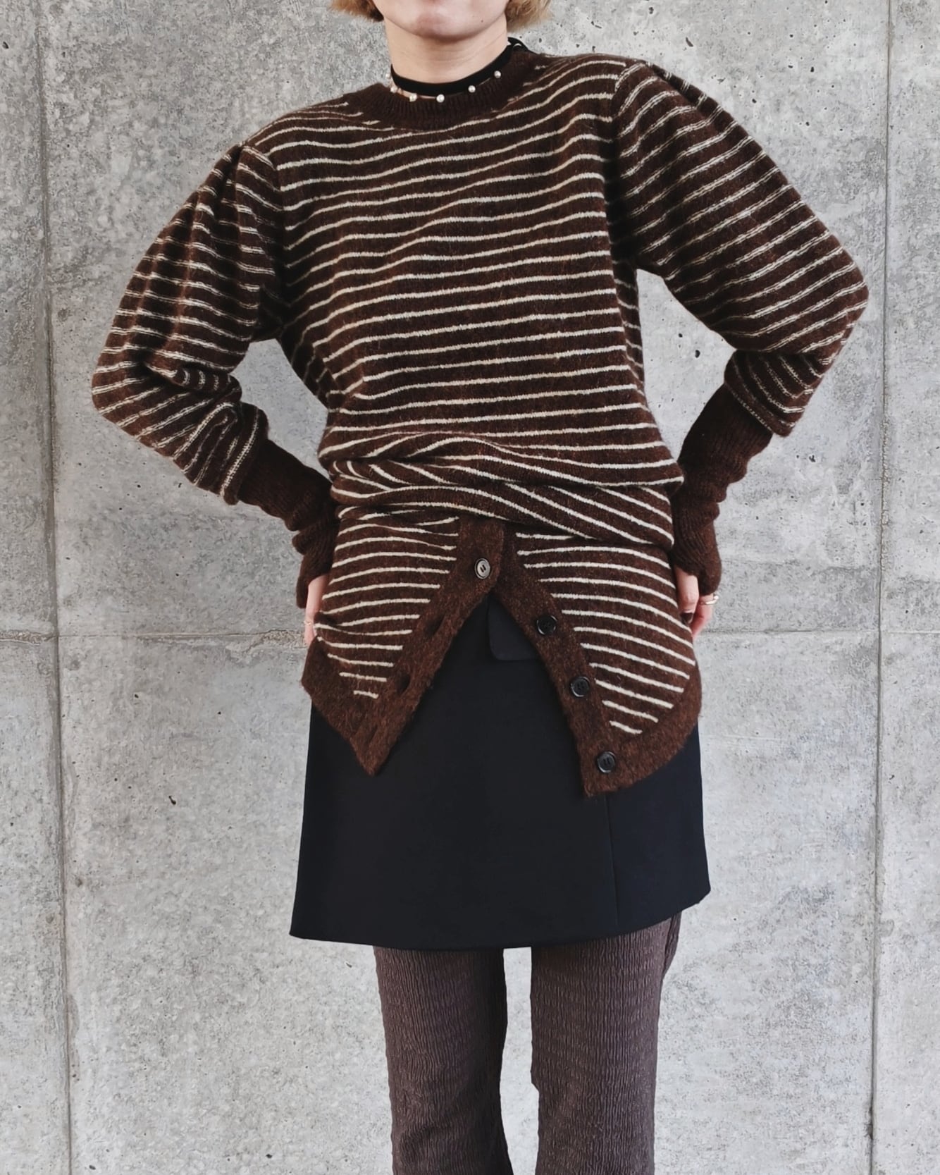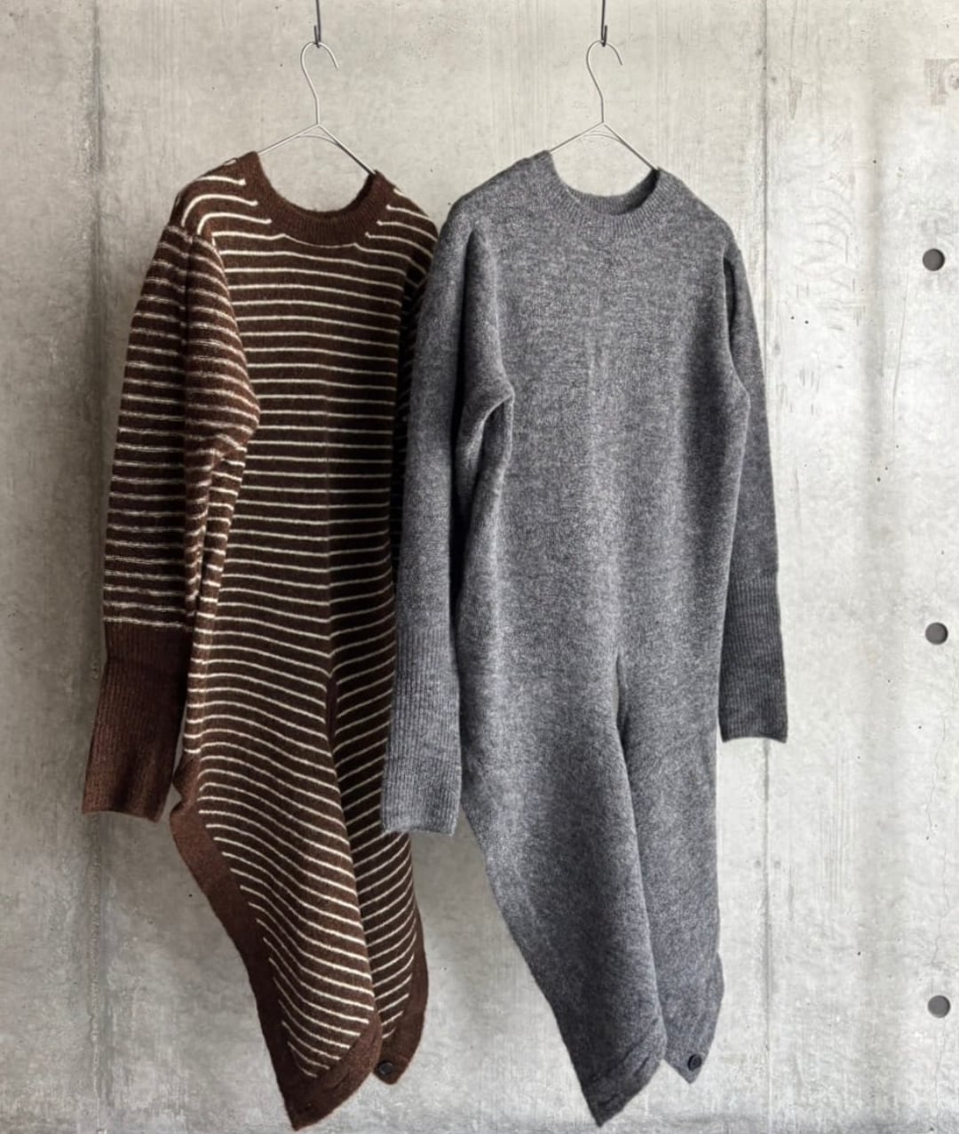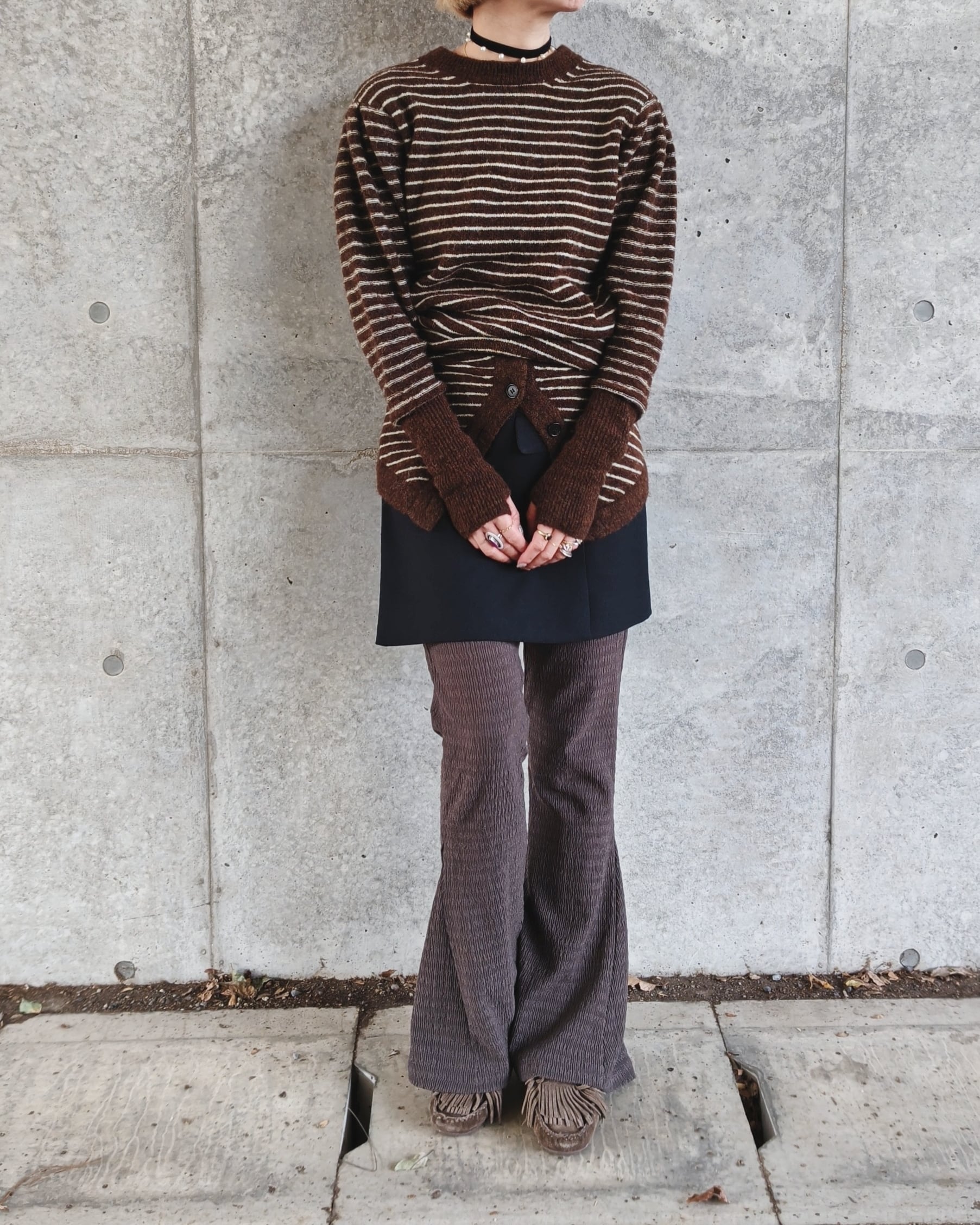 ニットも中肉で真冬でもコートの中に着やすい厚みとストレッチの効いたもちもちとした素材感が心地良いアイテムです