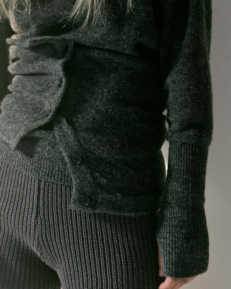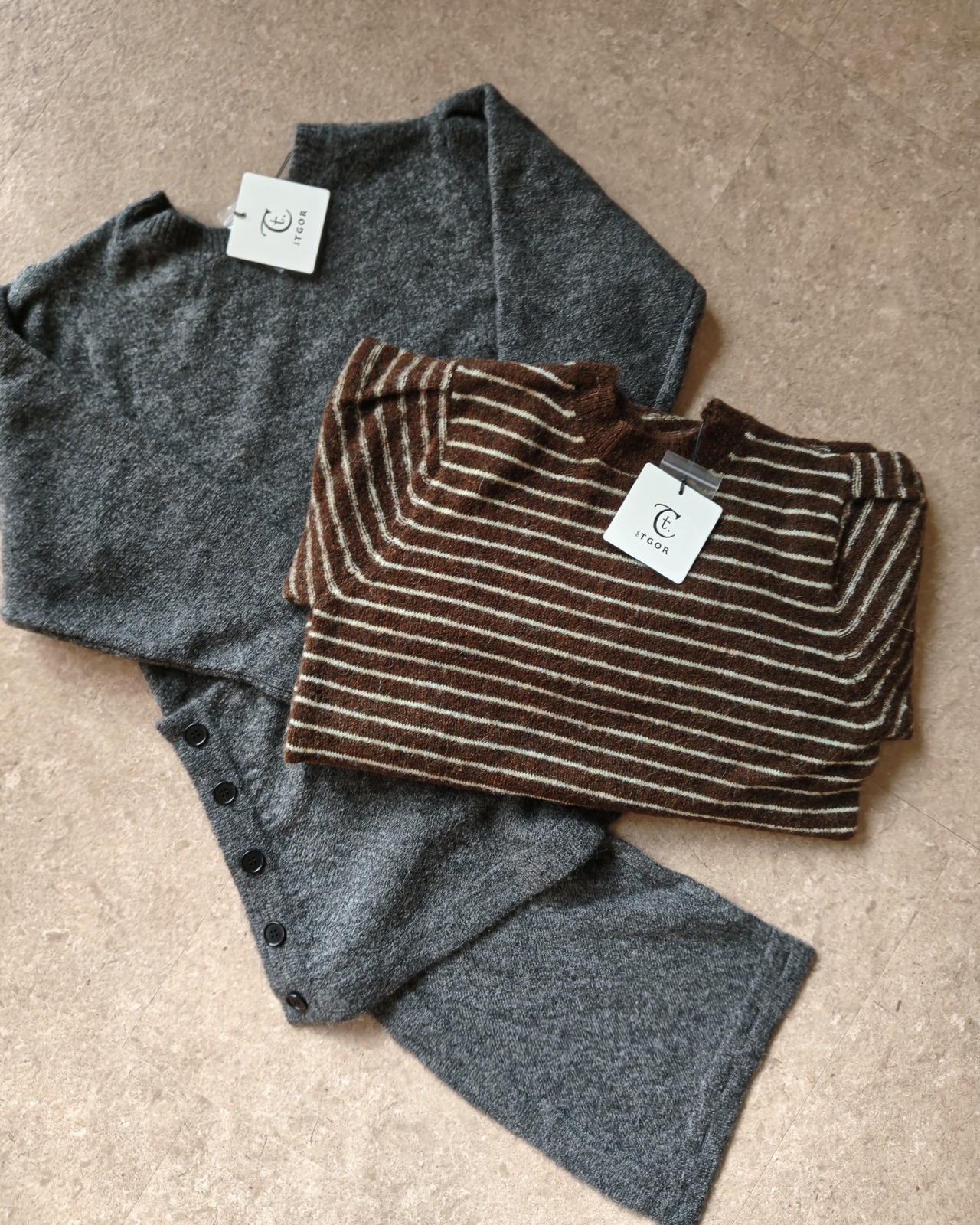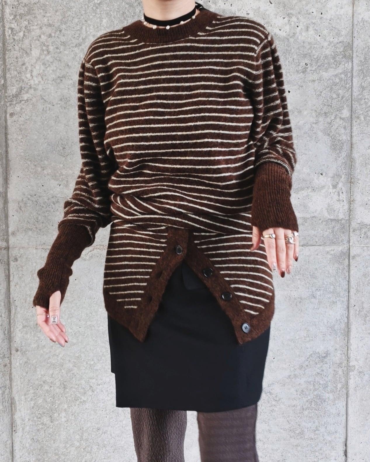 ニットも中肉で真冬でもコートの中に着やすい厚みとストレッチの効いたもちもちとした素材感が心地良いアイテムです