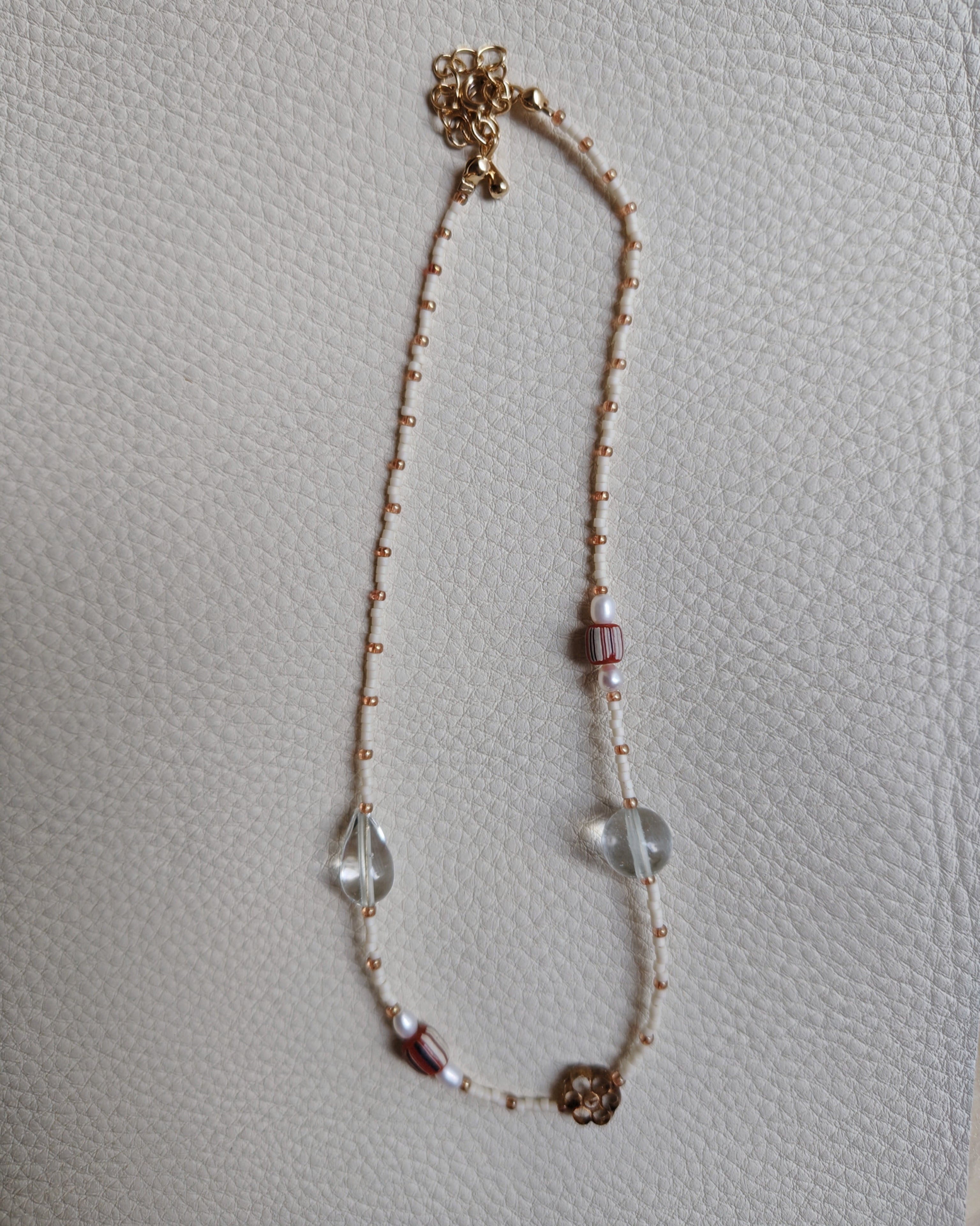 天然石や淡水パールや硝子ビーズでの作成となります落としたりなどの衝撃にはご注意下さいませ。