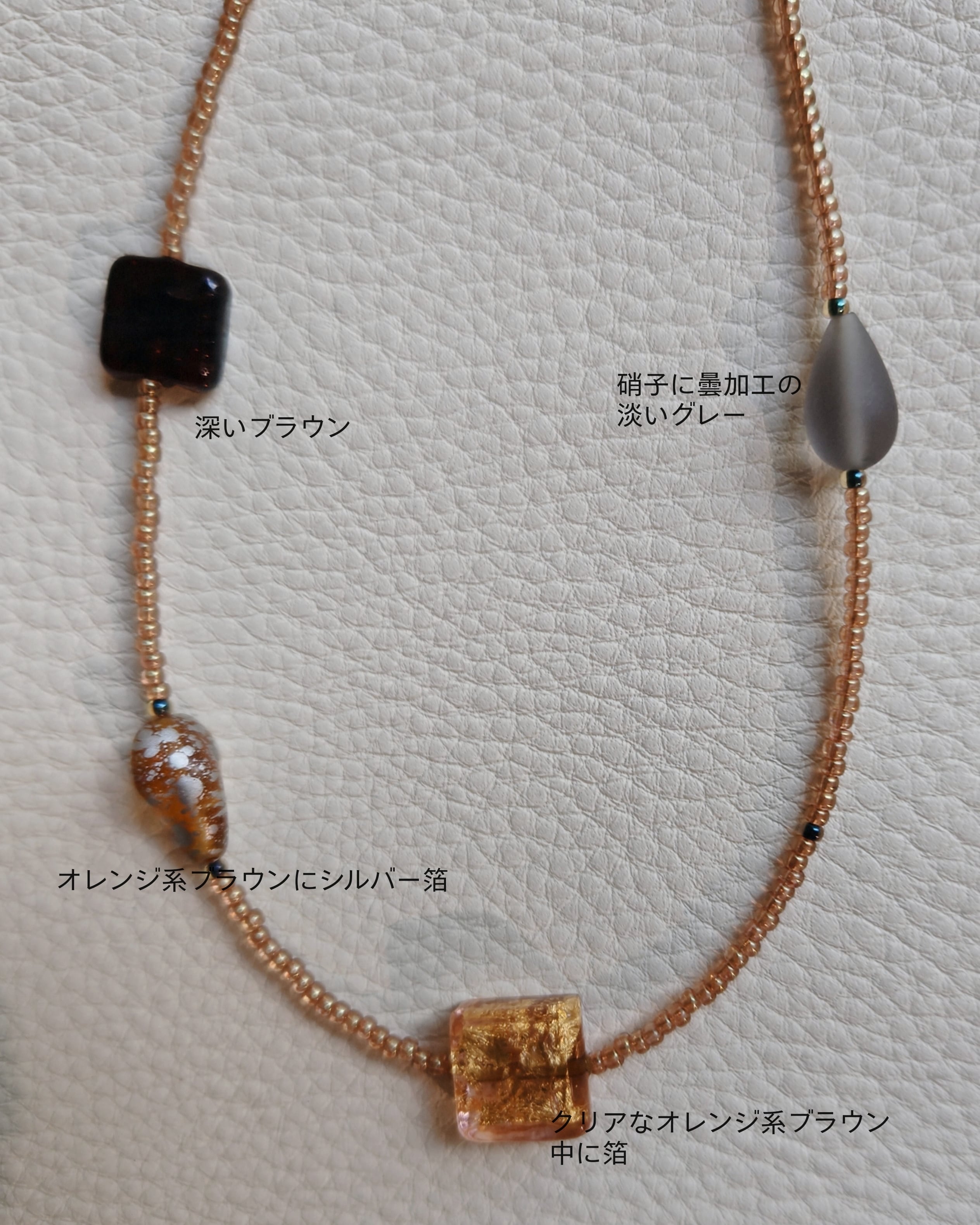 でブラウン系で統一したネックレスとなります。